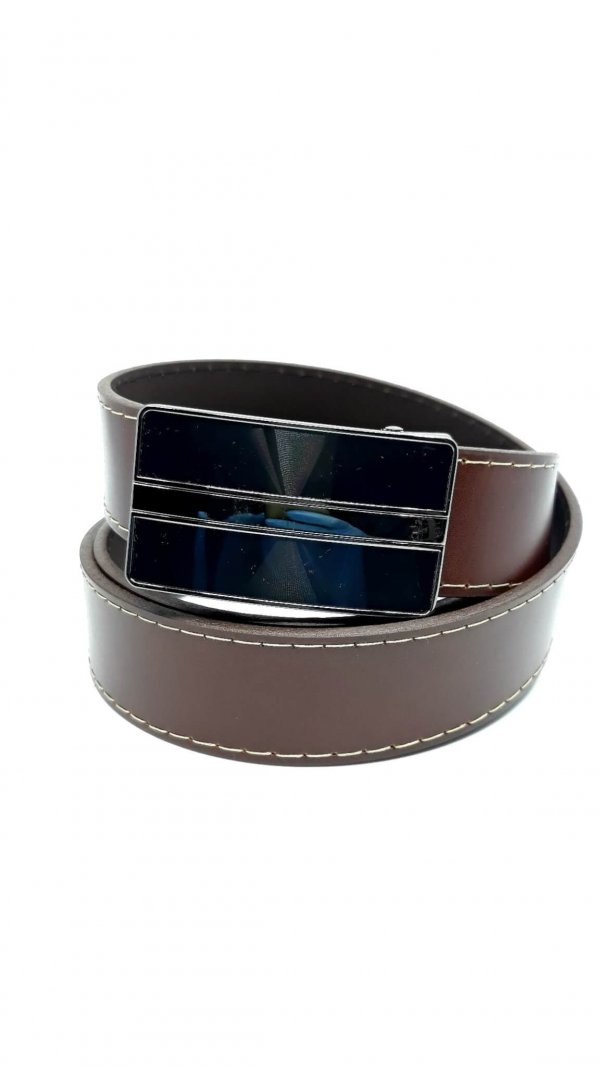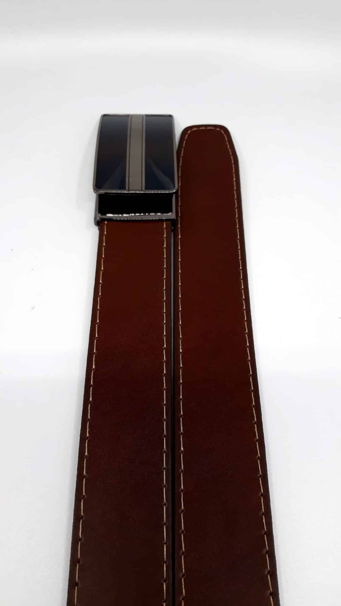 Skórzany pasek do spodni ciemny brąz, automat z obszyciem wykonany z naturalnej skóry przez polskiego producenta