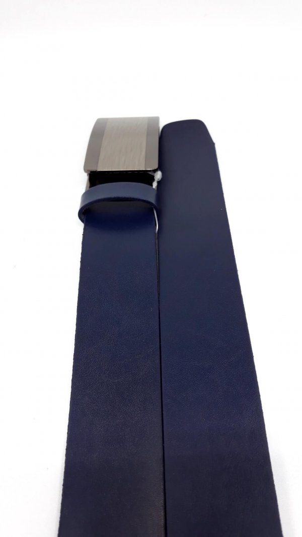 Skórzany pasek granatowy, automat do spodni wykonany z naturalnej skóry przez polskiego producenta