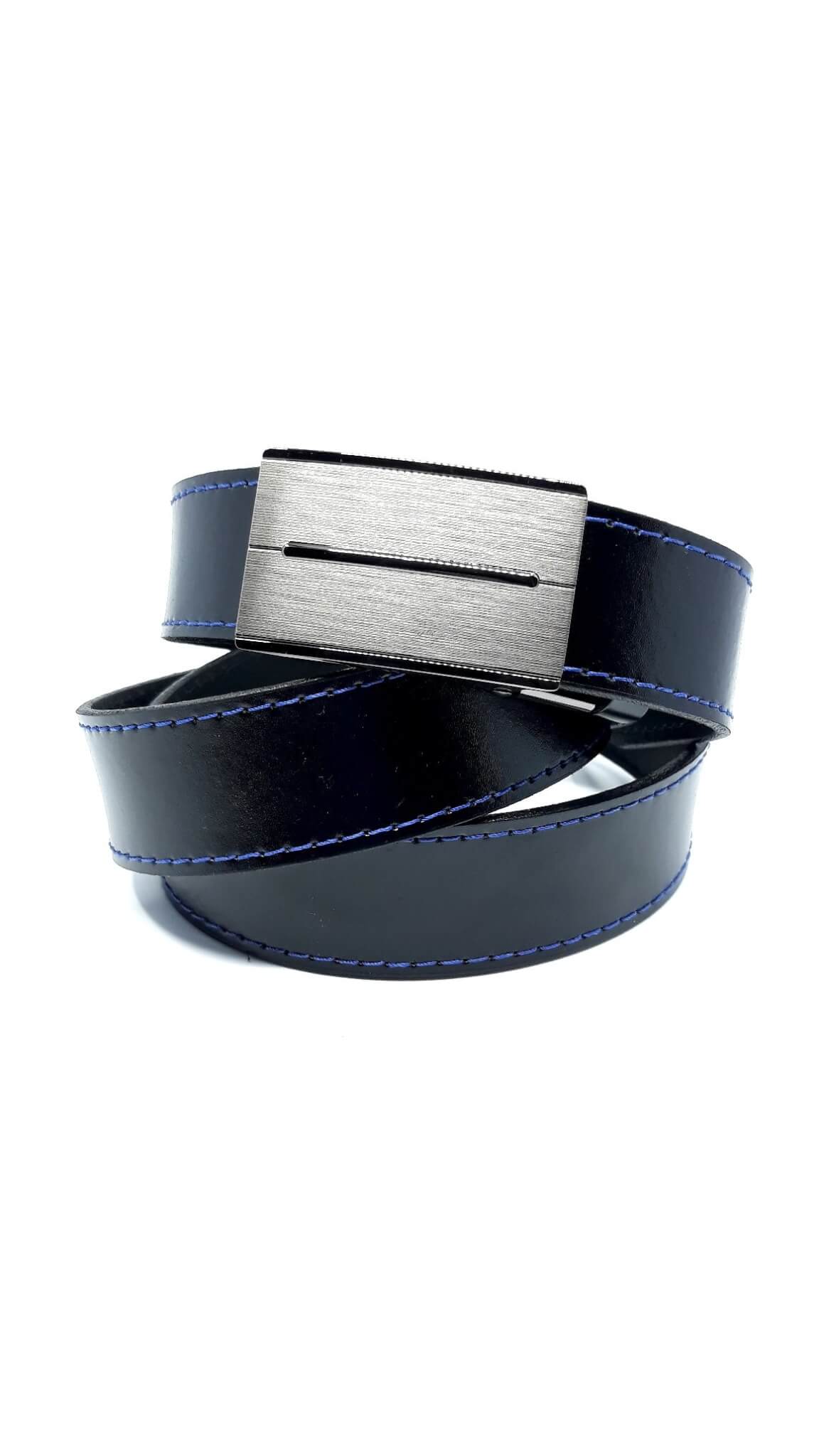 Pasek skórzany czarny, niebieskie obszycie do spodni wykonany z naturalnej skóry przez polskiego producenta