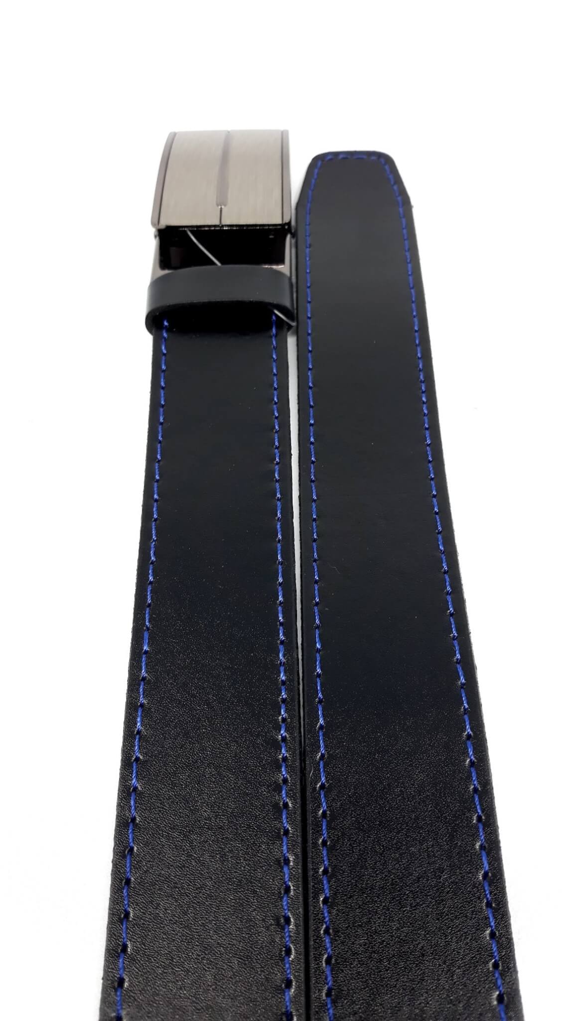 Pasek Skórzany Czarny Niebieskie Obszycie