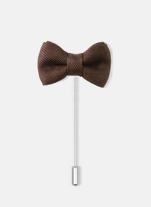 Pin Przypinka Kokardka Brązowy. Z pewnością to doskonały dodatek do marynarki, który nada stylizacji oryginalności i ponadczasowego wyglądu. Wykonany precyzyjnie ,zabezpieczony zatyczką od dołu. Pin dobieramy kolorystycznie do muchy lub krawatu albo do samej poszetki.