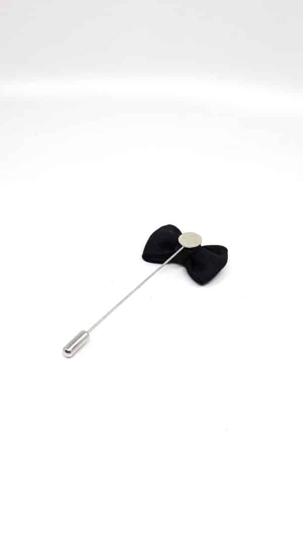 Pin Przypinka Kokardka Czarna. Z pewnością to doskonały dodatek do marynarki, który nada stylizacji oryginalności i ponadczasowego wyglądu. Wykonany precyzyjnie ,zabezpieczony zatyczką od dołu. Pin dobieramy kolorystycznie do muchy lub krawatu albo do samej poszetki.