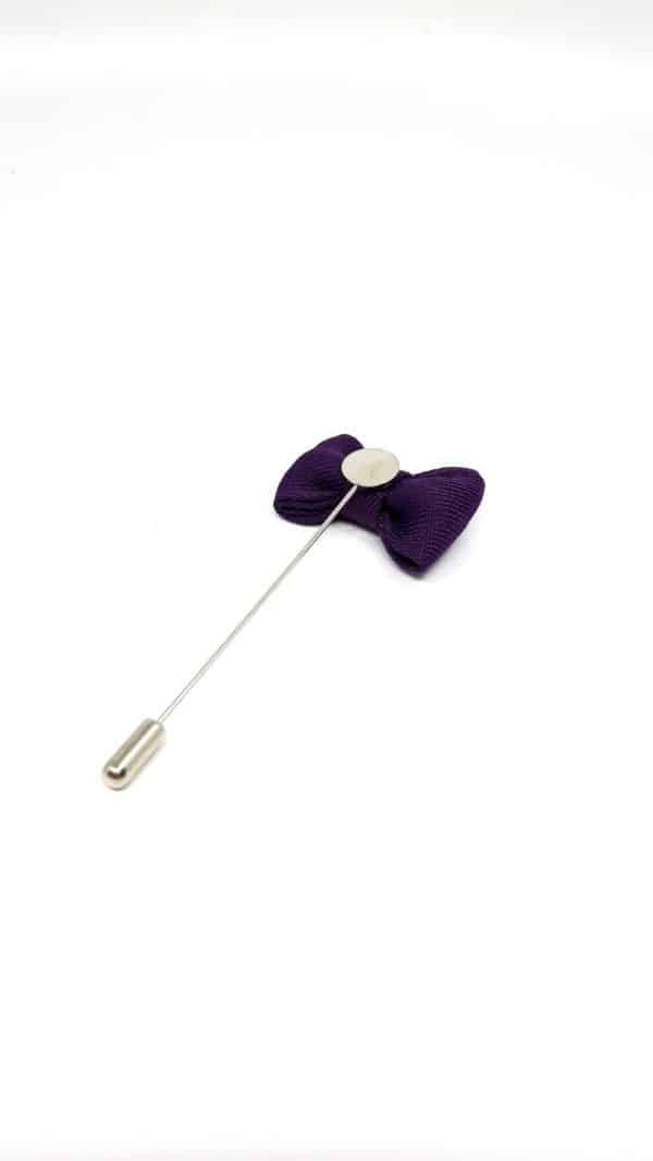 Pin Przypinka Kokardka Fiolet. Z pewnością to doskonały dodatek do marynarki, który nada stylizacji oryginalności i ponadczasowego wyglądu. Wykonany precyzyjnie ,zabezpieczony zatyczką od dołu. Pin dobieramy kolorystycznie do muchy lub krawatu albo do samej poszetki.