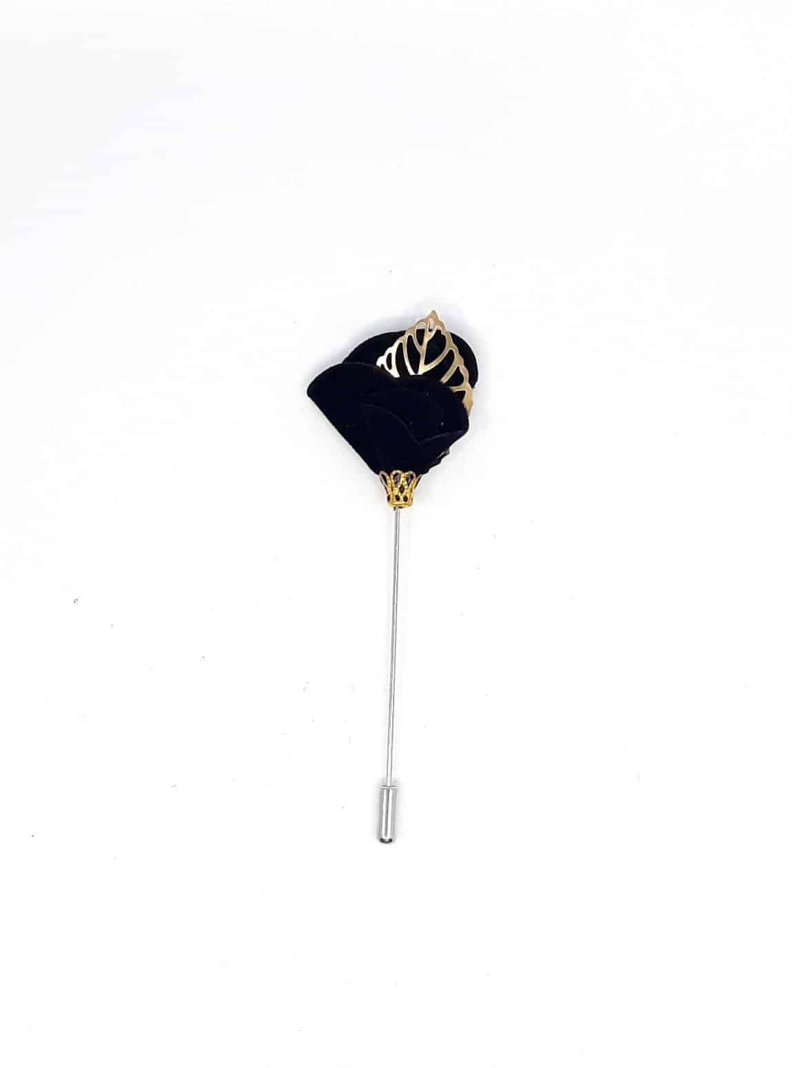 Pin Przypinka Kwiatek Czarny. Z pewnością to doskonały dodatek do marynarki, który nada stylizacji oryginalności i ponadczasowego wyglądu. Wykonany precyzyjnie ,zabezpieczony zatyczką od dołu. Pin dobieramy kolorystycznie do muchy lub krawatu albo do samej poszetki.
