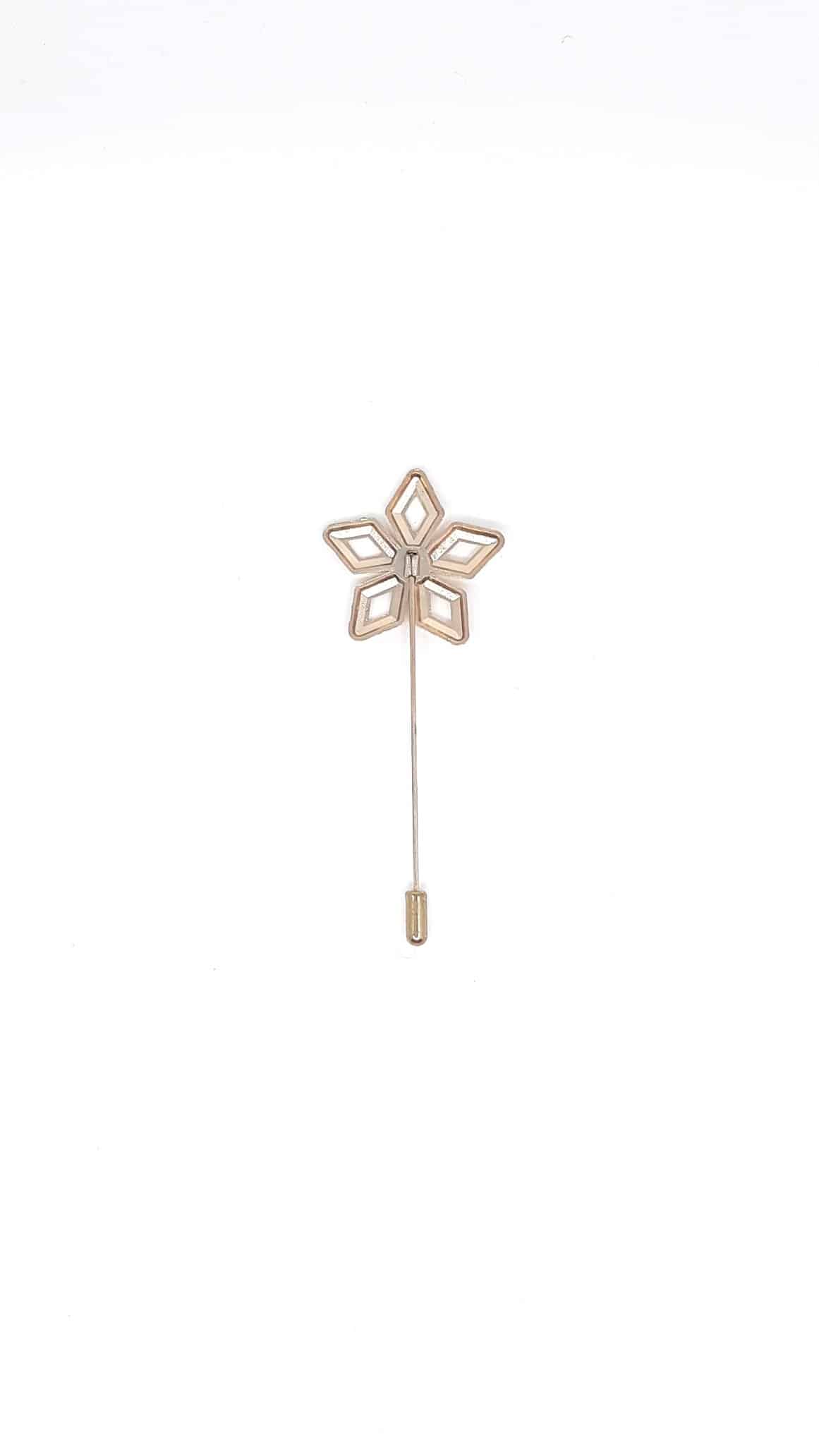 Pin Przypinka Kwiatek Złoty. Z pewnością to doskonały dodatek do marynarki, który nada stylizacji oryginalności i ponadczasowego wyglądu. Wykonany precyzyjnie ,zabezpieczony zatyczką od dołu. Pin dobieramy kolorystycznie do muchy lub krawatu albo do samej poszetki.