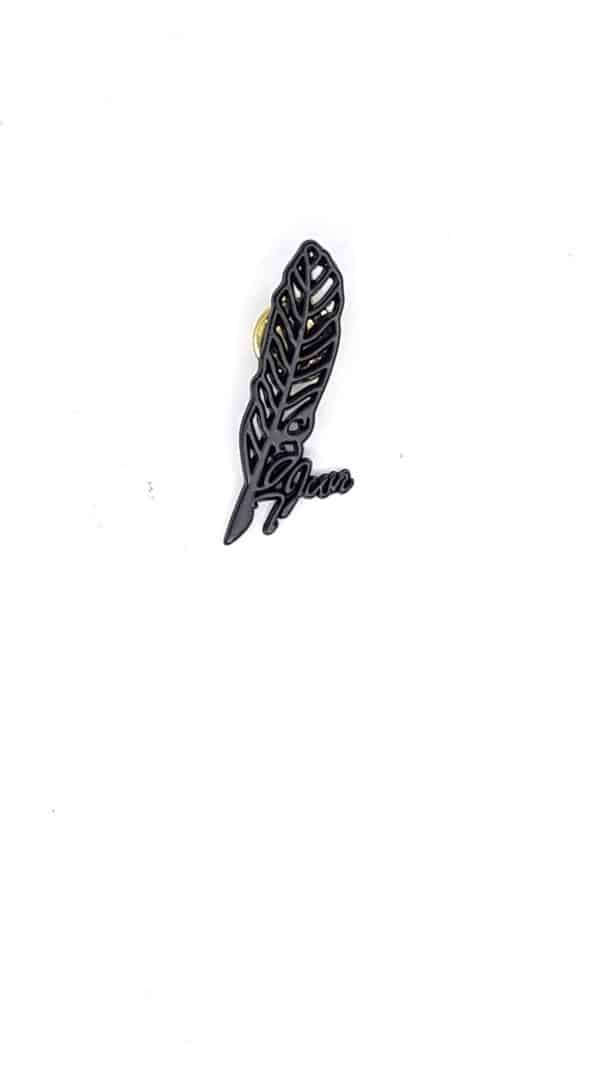 Pin Przypinka Pióro w kolorze czarnym . Z pewnością to doskonały dodatek do marynarki, który nada stylizacji oryginalności i ponadczasowego wyglądu. Wykonany precyzyjnie ,zabezpieczony zatyczką od dołu. Pin dobieramy kolorystycznie do muchy lub krawatu albo do samej poszetki.