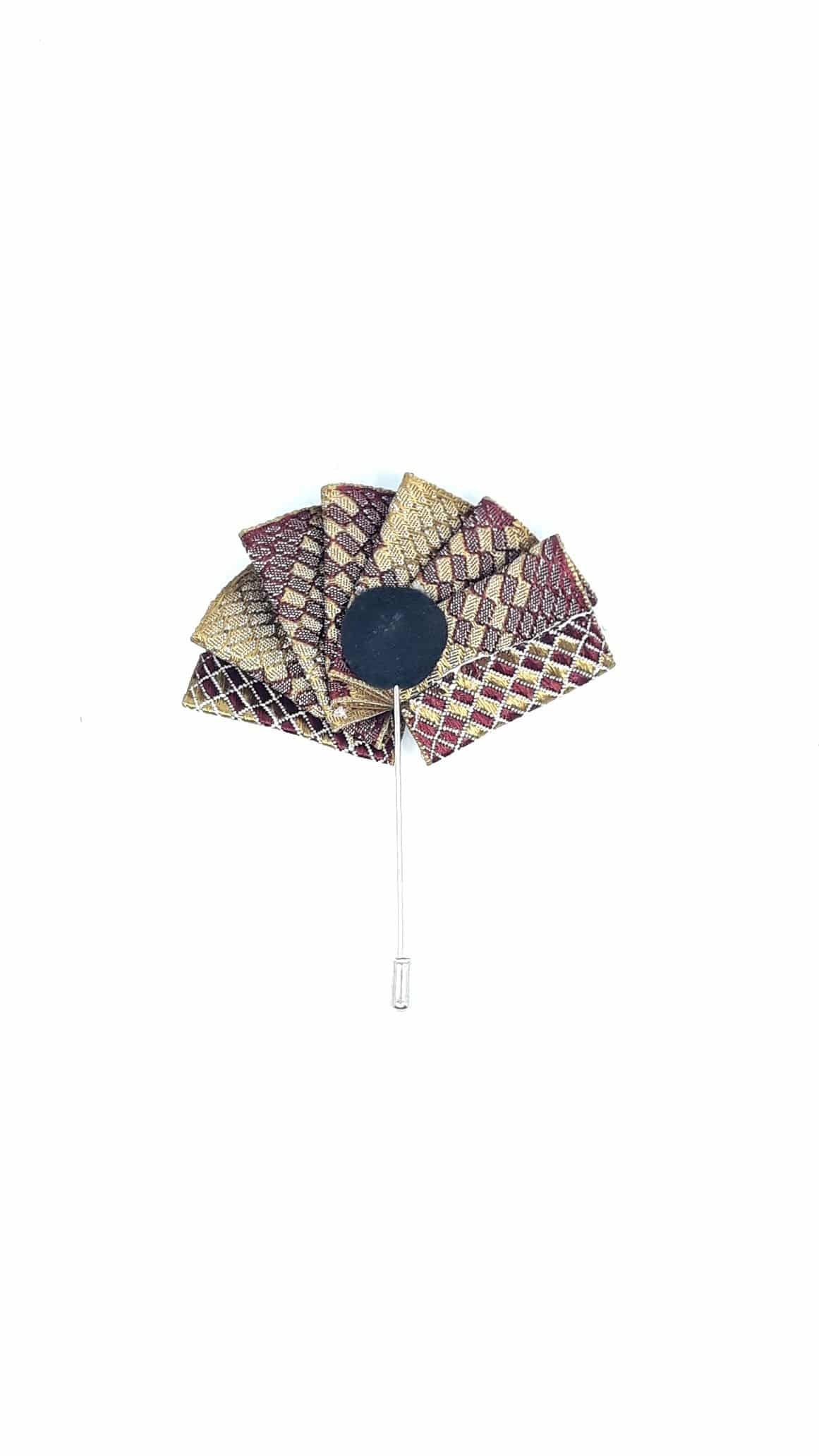 Pin Przypinka Wachlarz Bordo Złoto . Z pewnością to doskonały dodatek do marynarki, który nada stylizacji oryginalności i ponadczasowego wyglądu. Wykonany precyzyjnie ,zabezpieczony zatyczką od dołu. Pin dobieramy kolorystycznie do muchy lub krawatu albo do samej poszetki.
