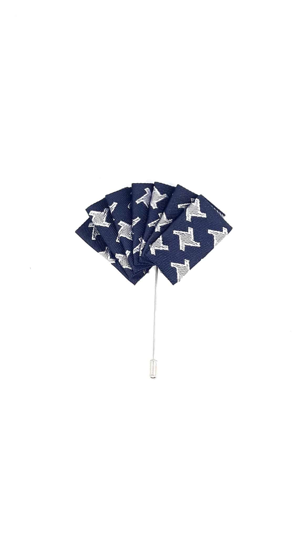 Pin Przypinka Wachlarz Granat Biały. Z pewnością jest to doskonały dodatek do marynarki, który nada stylizacji oryginalności i ponadczasowego wyglądu. Wykonany precyzyjnie ,zabezpieczony zatyczką od dołu. Pin dobieramy kolorystycznie do muchy lub krawatu albo do samej poszetki.