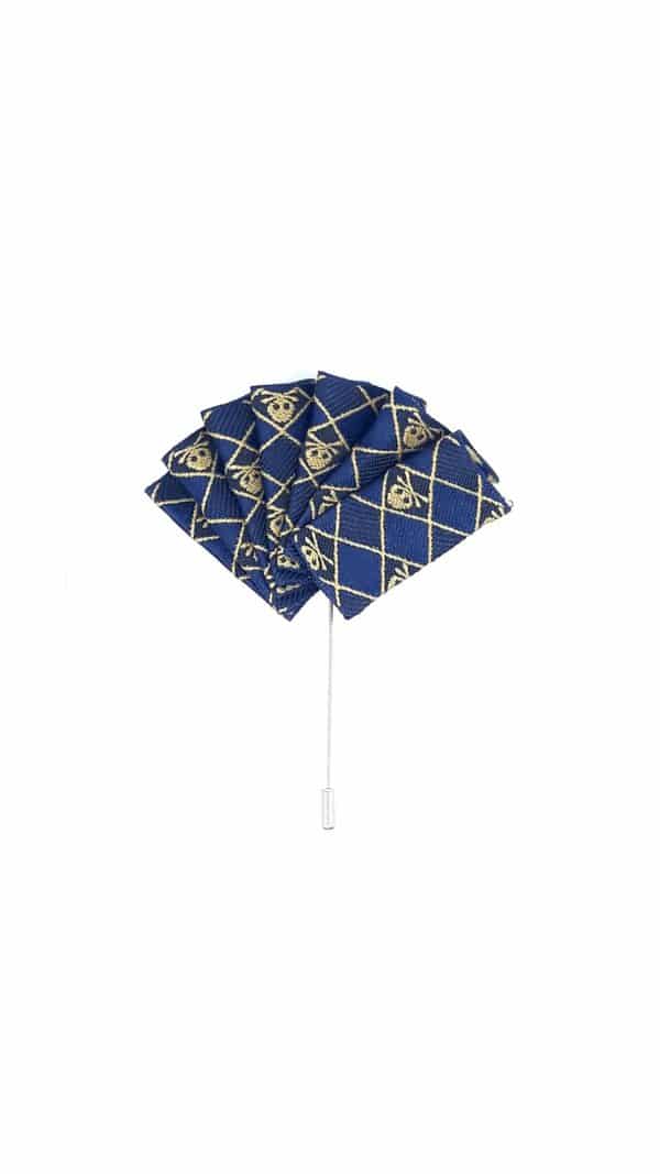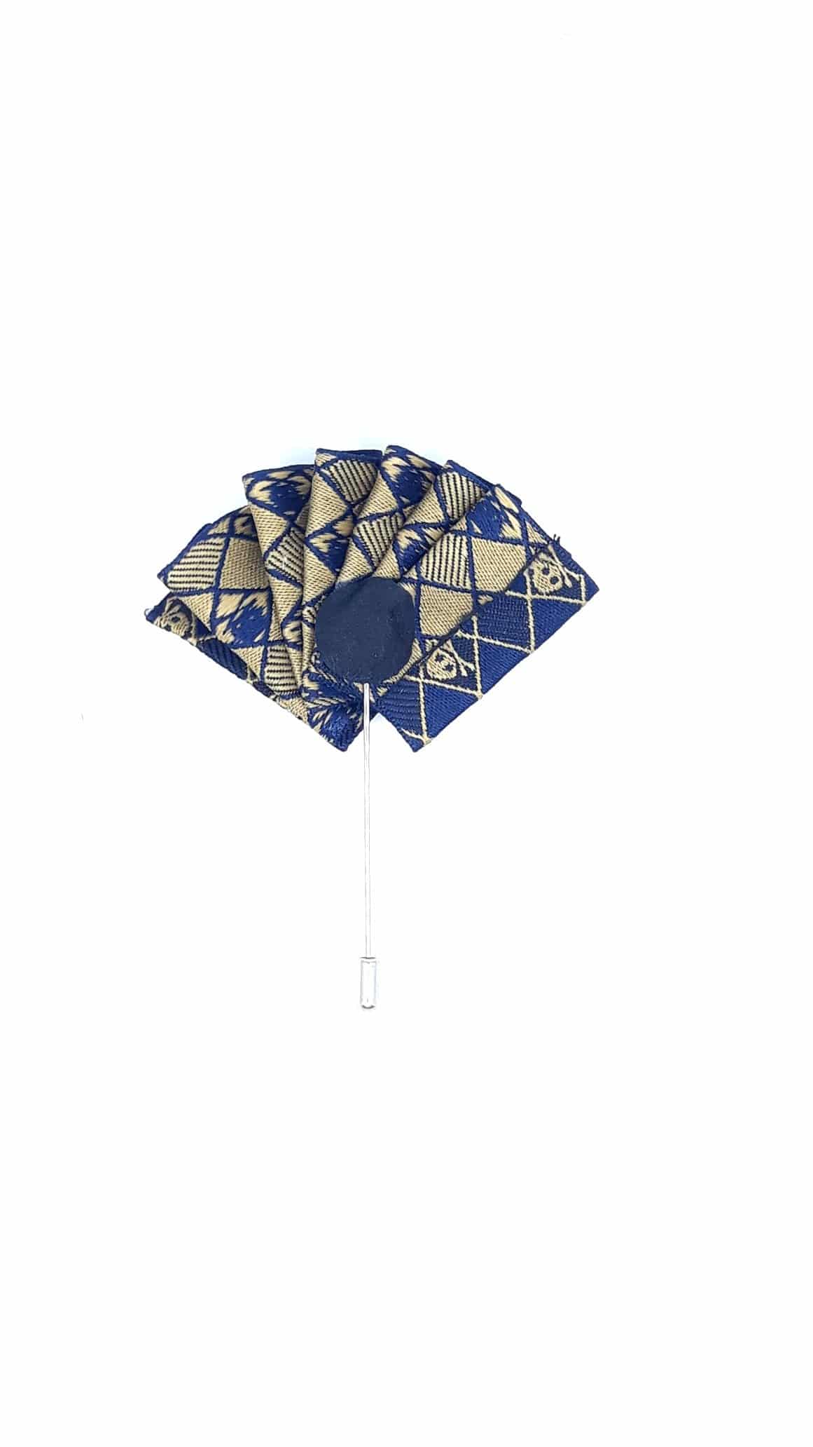 Pin Przypinka Wachlarz Granat Złoty. Z pewnością to doskonały dodatek do marynarki, który nada stylizacji oryginalności i ponadczasowego wyglądu. Wykonany precyzyjnie ,zabezpieczony zatyczką od dołu. Pin dobieramy kolorystycznie do muchy lub krawatu albo do samej poszetki.