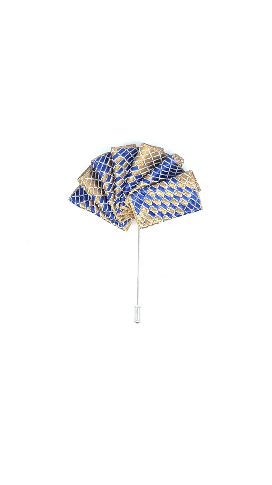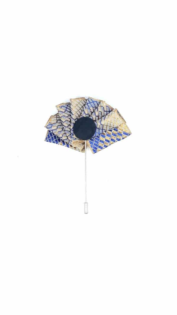 Pin Przypinka Wachlarz Złoto Niebieski. Z pewnością to doskonały dodatek do marynarki, który nada stylizacji oryginalności i ponadczasowego wyglądu. Wykonany precyzyjnie ,zabezpieczony zatyczką od dołu. Pin dobieramy kolorystycznie do muchy lub krawatu albo do samej poszetki.