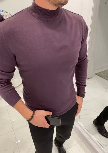 Półgolf męski wełniany fiolet. Miękki i przyjemny do ciała materiał, który nie mechaci się i nie rozciąga. Jednokolorowy bez wzorów. Klasyczny oraz wełniany ze stójką. Najwyższa jakość wykonania. Bez wątpienia świetnie sprawdza się w chłodne miesiące, przede wszystkim znakomicie się układa. Dodatkowo dopasowuje do każdej sylwetki. Doskonały do większości stylizacji.
