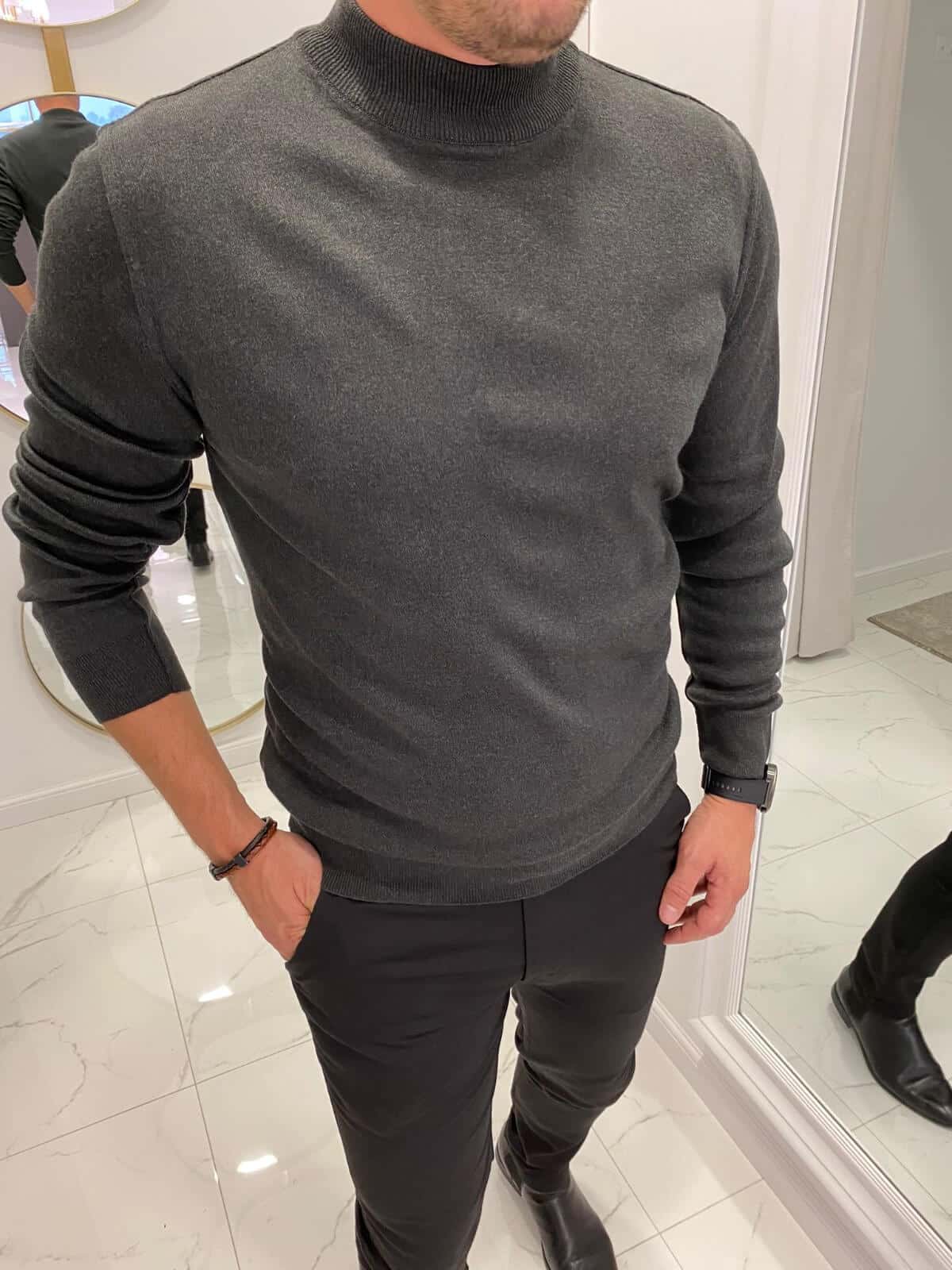 Półgolf męski wełniany Popiel. Miękki i przyjemny do ciała materiał, który nie mechaci się i nie rozciąga. Jednokolorowy bez wzorów. Klasyczny oraz wełniany ze stójką. Najwyższa jakość wykonania. Bez wątpienia świetnie sprawdza się w chłodne miesiące, przede wszystkim znakomicie się układa. Dodatkowo dopasowuje do każdej sylwetki. Doskonały do większości stylizacji.