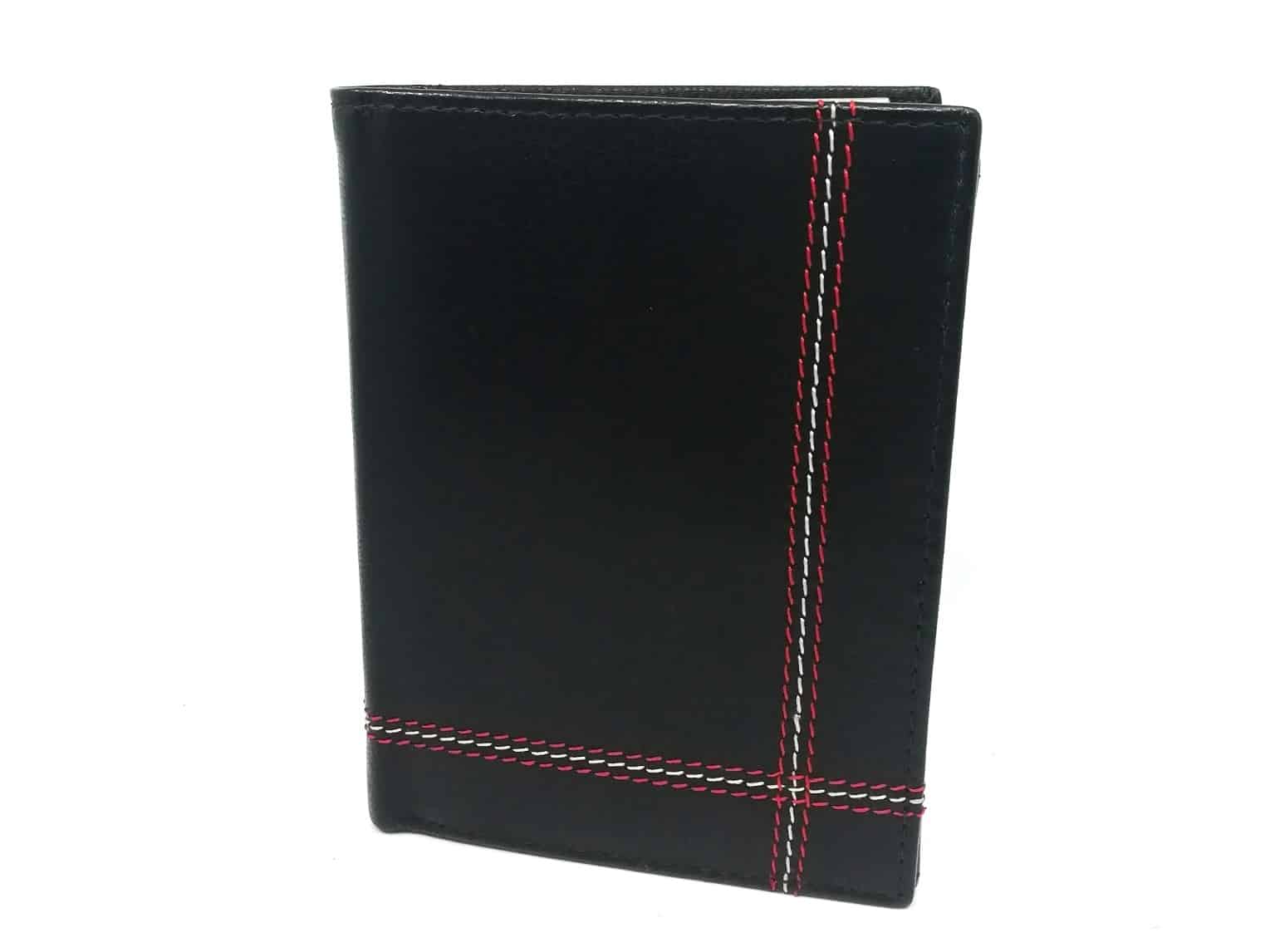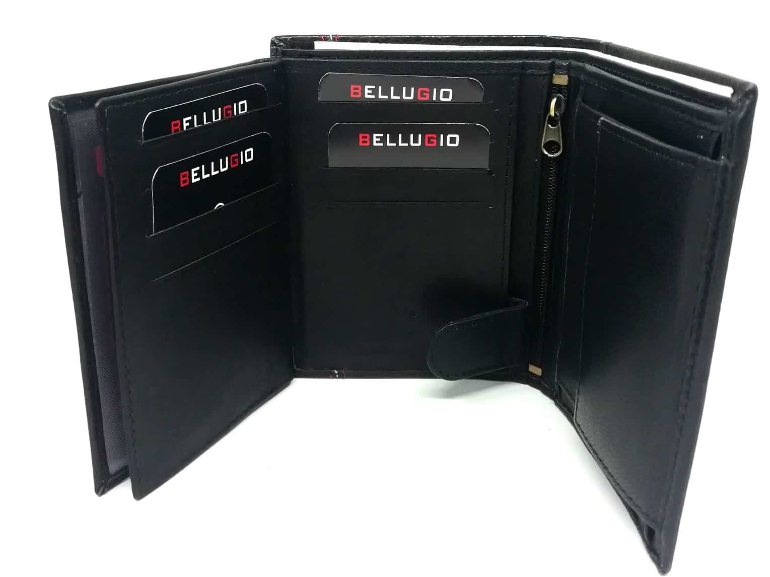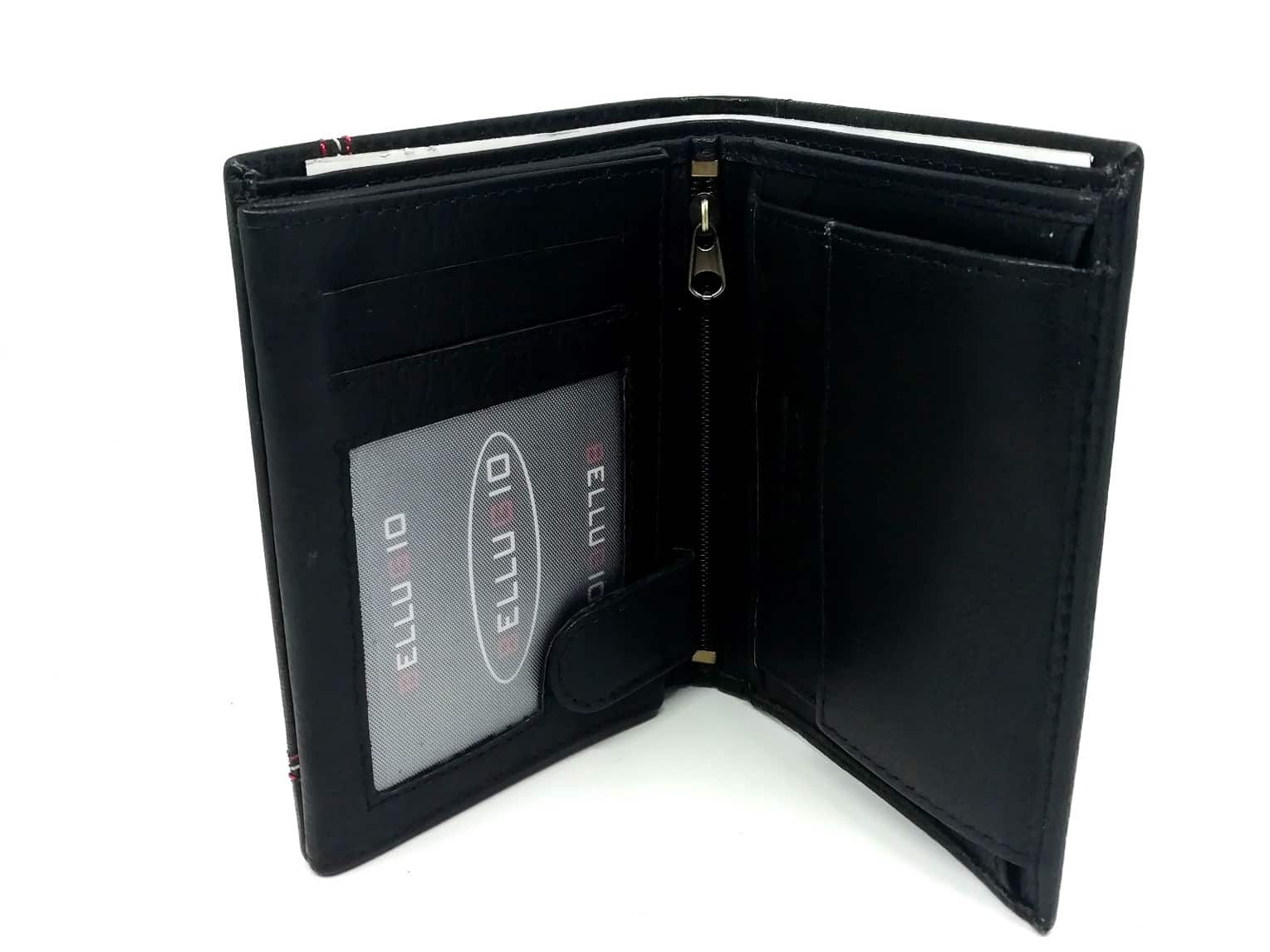 Portfel męski Bellugio czarny, skórzany z czerwono-białym paskiem to doskonała opcja dla niego. Klasyczna czerń nigdy nie wychodzi z mody.