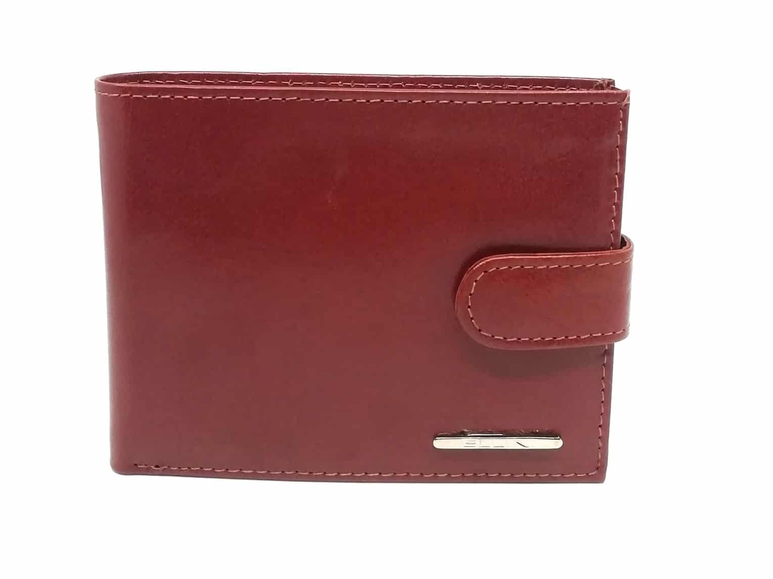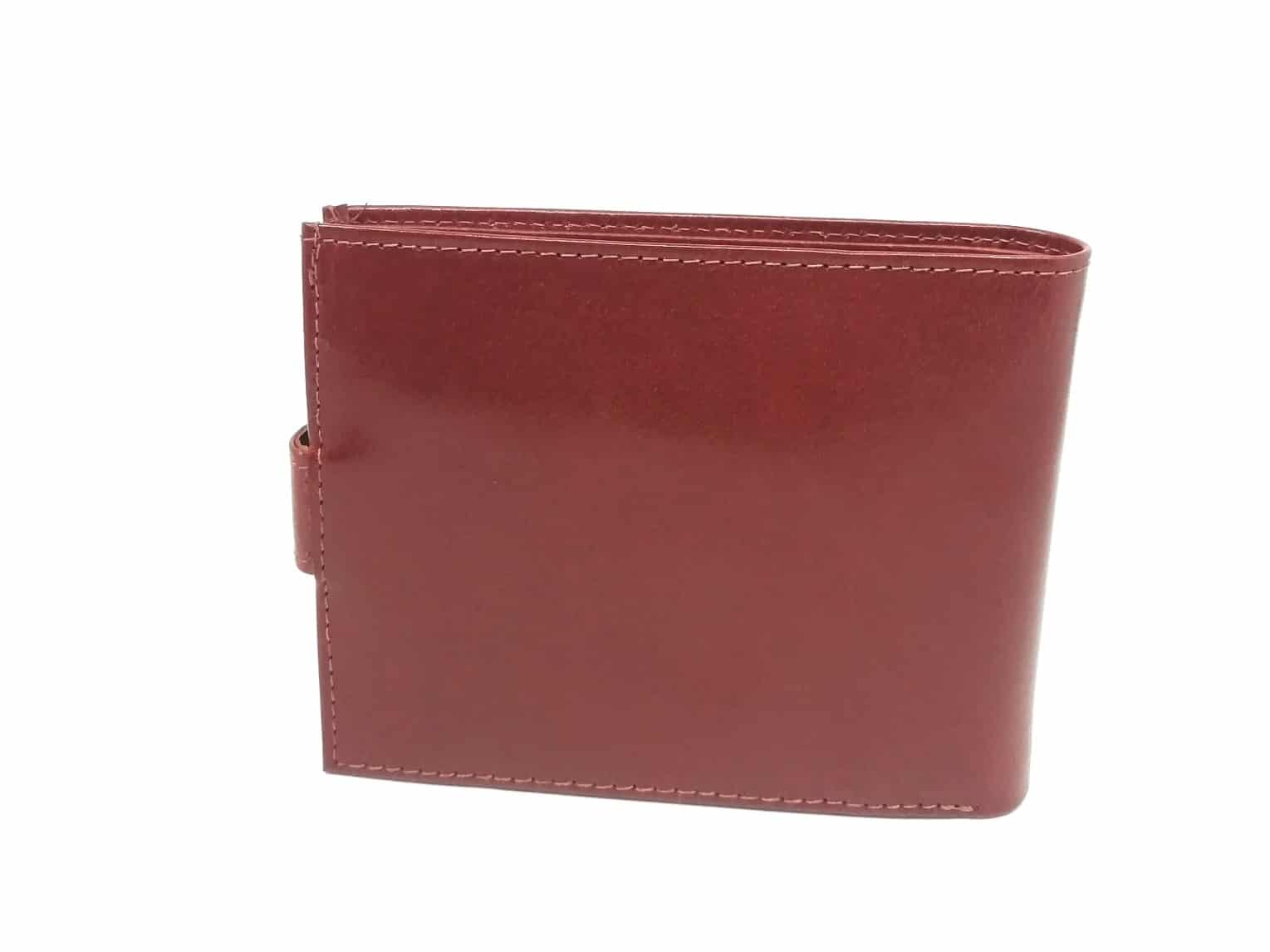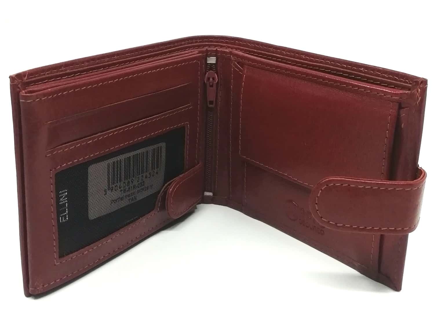 Model z zapięciem na nap o orientacji poziomej. Główna klapa posiada 8 miejsc na dokumenty o wielkości karty kredytowej, miejsce na dowód rejestracyjny, harmonijkową przegrodę na drobne monety i wizytówkę oraz obszerną i dwudzielną przegrodę na banknoty.