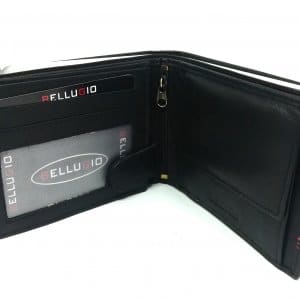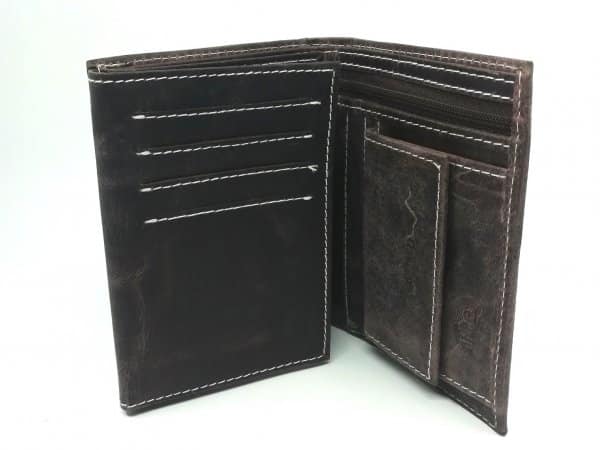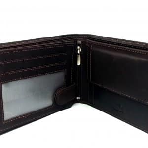 Model o orientacji pionowej. Główna klapa posiada 11 miejsc na dokumenty o wielkości karty kredytowej, miejsce na dowód rejestracyjny i zdjęcia, harmonijkową przegrodę na drobne monety i wizytówkę oraz obszerną i dwudzielną przegrodę na banknoty-jedną zasuwaną na zamek, schowek na zamek.