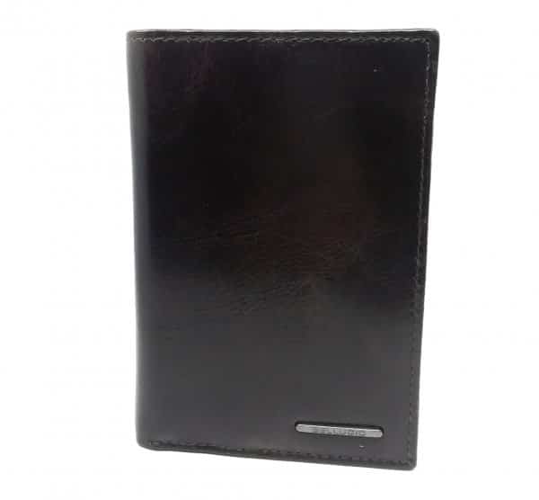 Model o orientacji pionowej. Główna klapa posiada 12 miejsc na dokumenty o wielkości karty kredytowej (w tym jedna otwierana pionowo), miejsce na dowód rejestracyjny i zdjęcia, harmonijkową przegrodę na drobne monety i wizytówkę oraz obszerną i dwudzielną przegrodę na banknoty oraz schowek na zamek.