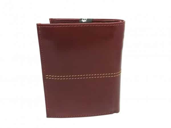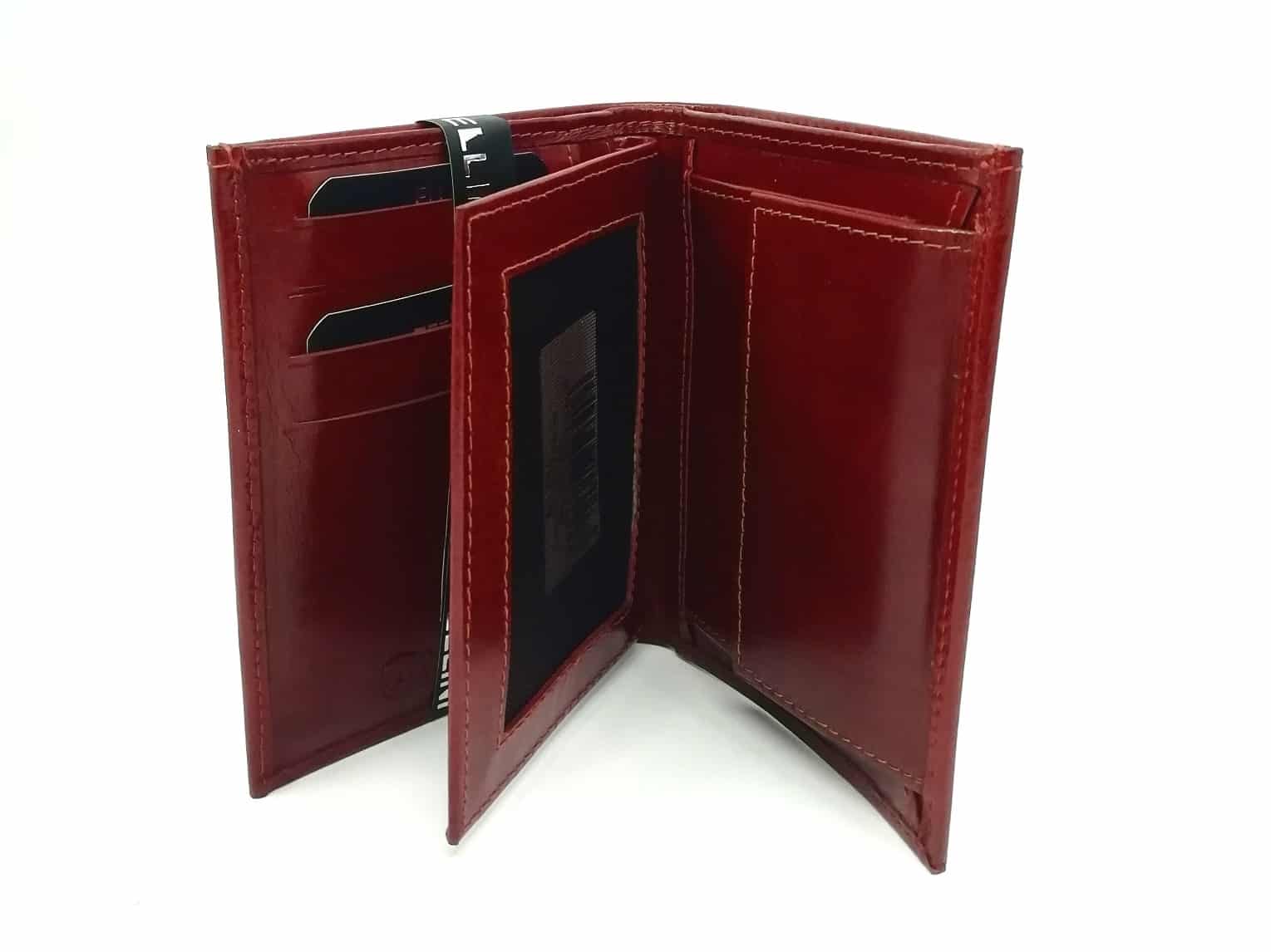 Model o orientacji pionowej. Główna klapa posiada 6 miejsc na dokumenty o wielkości karty kredytowej, miejsce na dowód rejestracyjny, harmonijkową przegrodę na drobne monety i wizytówkę oraz obszerną i dwudzielną przegrodę na banknoty, a jedna z nich jest zasuwana na zamek.