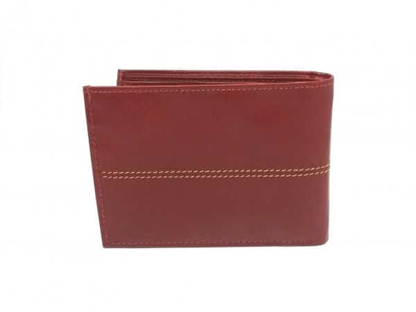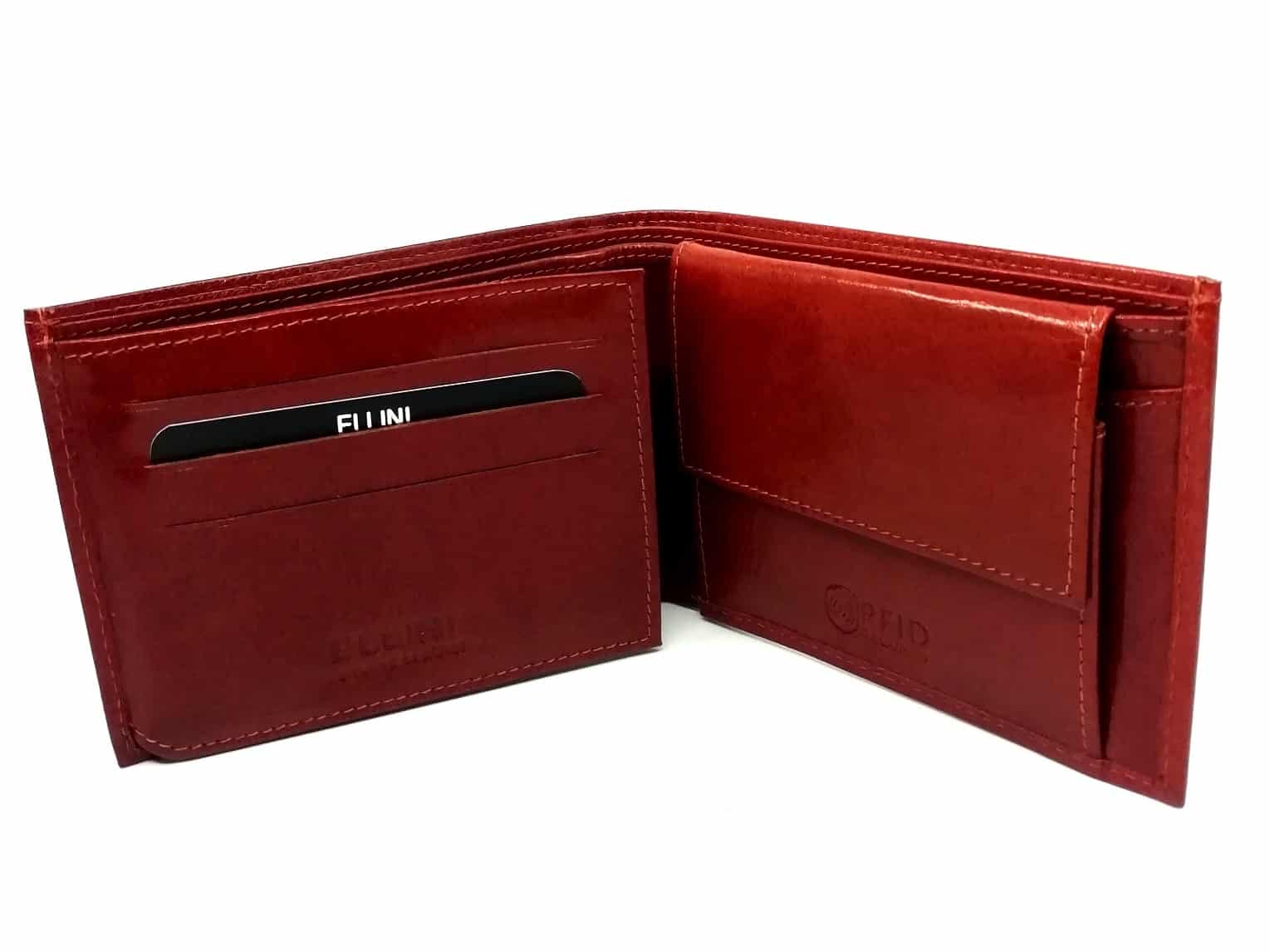 Model o orientacji poziomej. Główna klapa posiada 3 miejsca na dokumenty o wielkości karty kredytowej, miejsce na dowód rejestracyjny, harmonijkową przegrodę na drobne monety i wizytówkę oraz obszerną i dwudzielną przegrodę na banknoty.Posiada zabezpieczenie RFID przed kradzieżą.