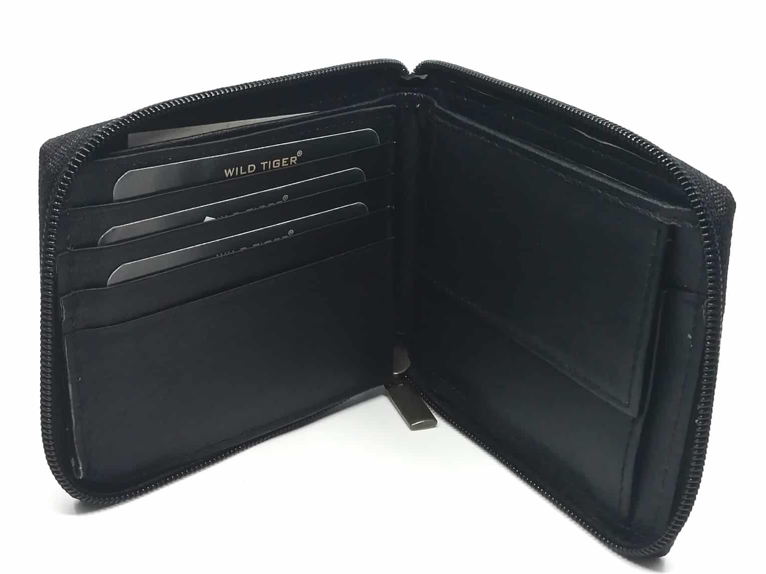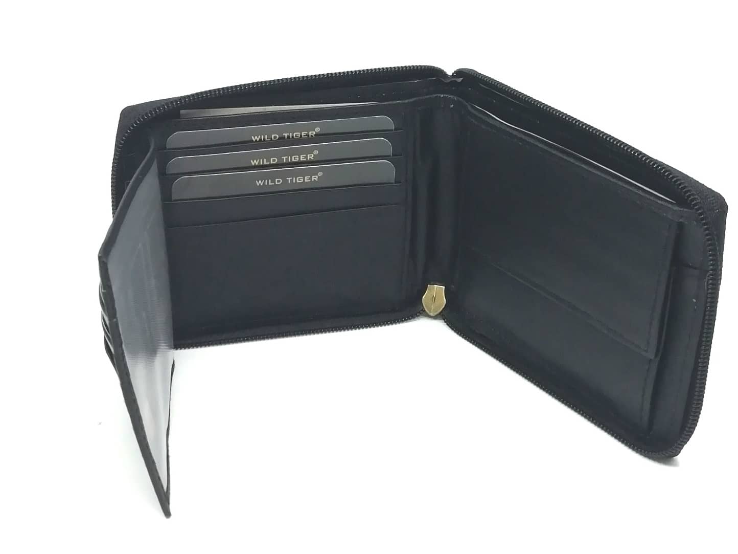 Portfel Męski Wild Tiger zasuwany to doskonała opcja dla niego. Klasyczny czarny nigdy nie wychodzi z mody.