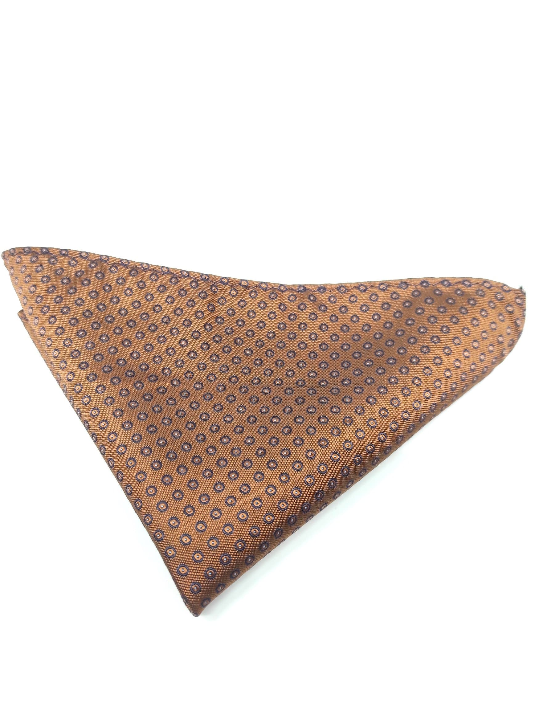 Poszetka brązowa w kółka granatowe.