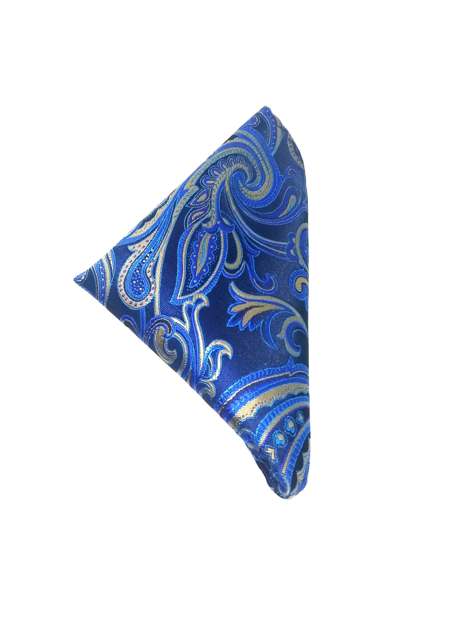 Poszetka granatowo niebieska w złoty wzór paisley.