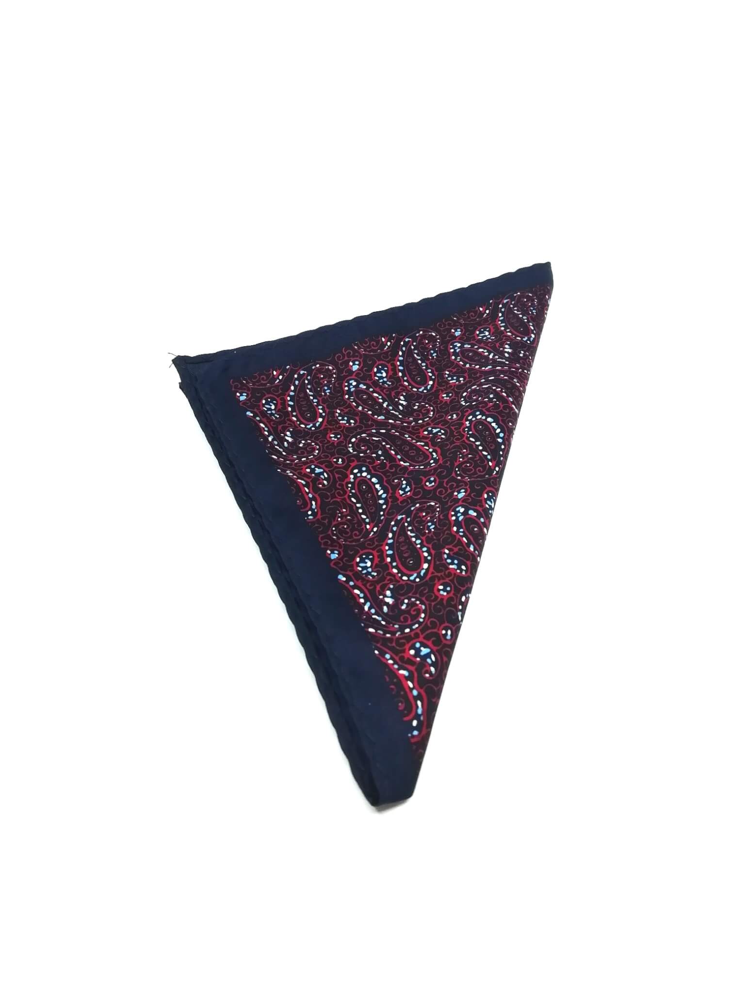 Poszetka granatowa w czerwony wzór paisley.