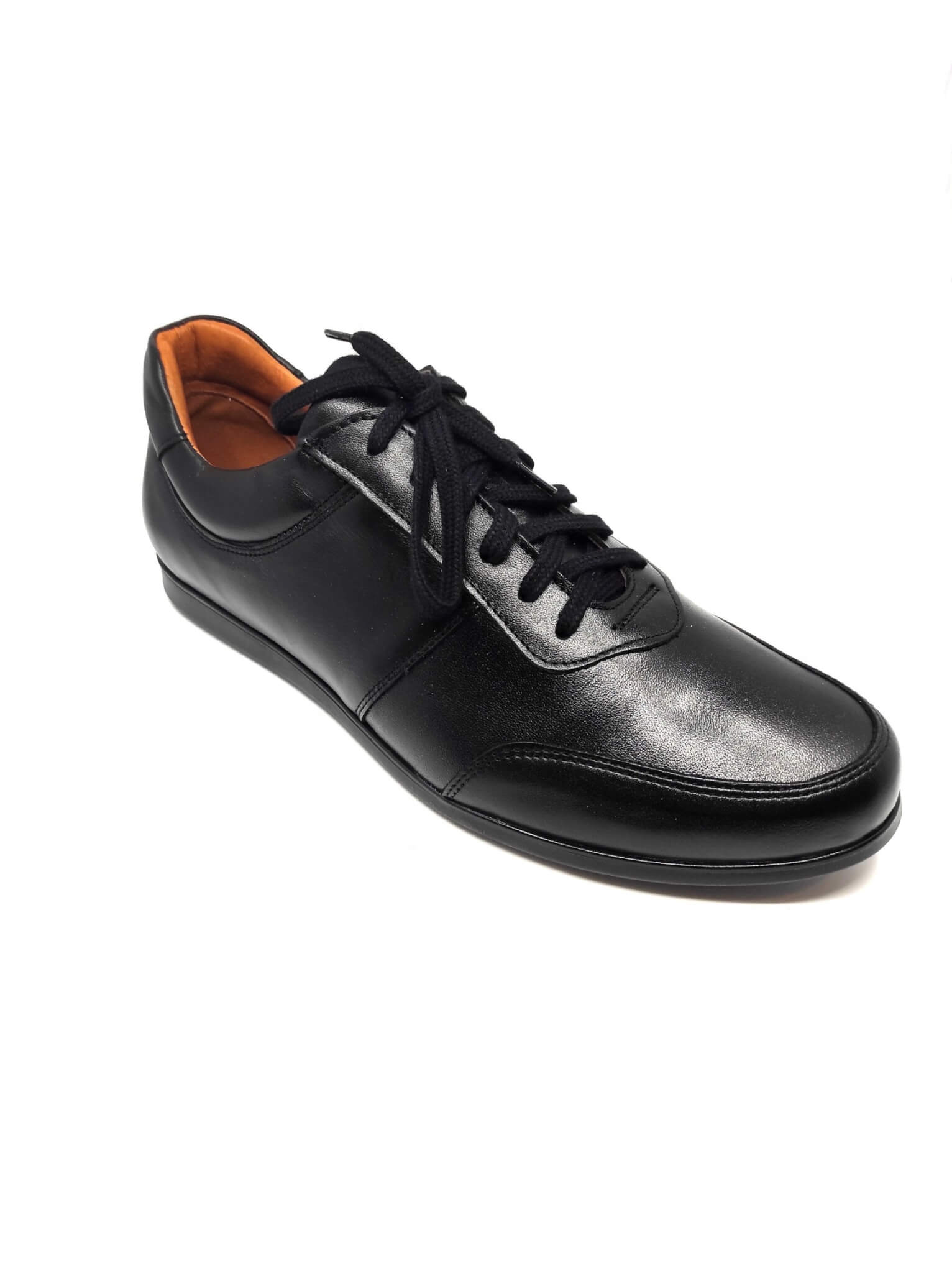 Skórzane męskie buty w kolorze czarnym. Buty mają okrągłe noski więc obuwie prezentuje się stylowo i elegancko natomiast miękka, skórzana, znakomicie wyprofilowana wkładka wewnątrz obuwia zapewnia komfort podczas chodzenia.