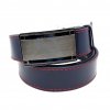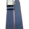 Skórzany pasek granatowy do spodni, posiadający czerwone obszycie, automat wykonany z naturalnej skóry przez polskiego producenta
