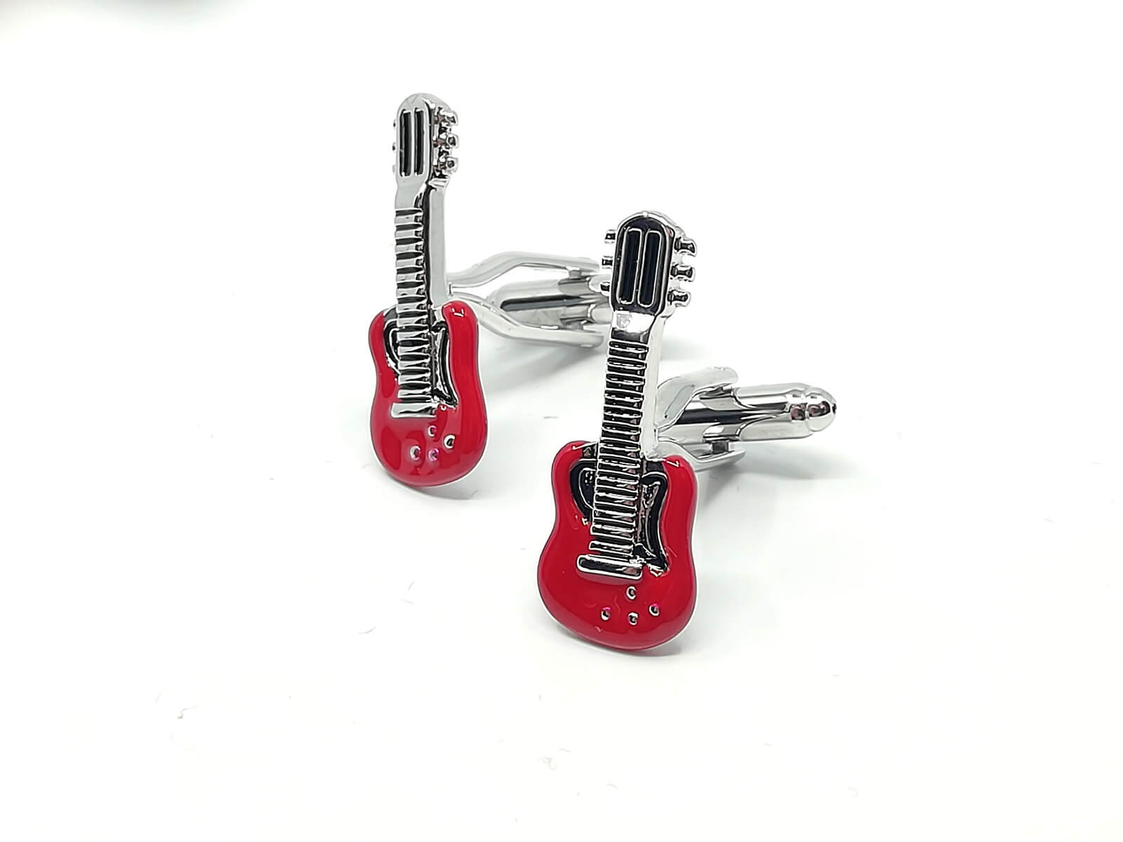Wyjątkowe spinki do mankietów w czerwone gitary. Wykonane z materiałów o wysokiej jakości z duża dbałością o szczegóły.
