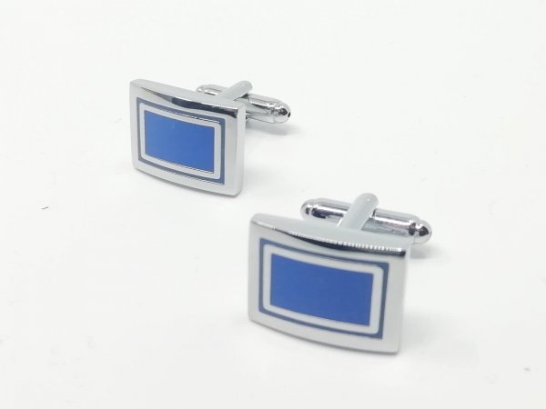 Wyjątkowe spinki do mankietów srebrne, posiadająca niebieski akcent. Wykonane z materiałów o wysokiej jakości z duża dbałością o szczegóły.