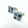 Wyjątkowe spinki do mankietów srebrne, posiadające kwadraciki niebiesko granatowe. Wykonane z materiałów o wysokiej jakości z duża dbałością o szczegóły. Spinki do mankietów stanową świetne uzupełnienie stroju każdego eleganckiego mężczyzny. Mogą również pełnić role zabawnego akcentu pokazującego zainteresowania noszącego je gentelmena. Jest to również jeden z niewielu elementów męskiej biżuterii, na który może pozwolić sobie mężczyzna. W połączeniu z bardziej lub mniej oficjalną koszulą tworzą niecodzienny i stylowy wygląd.