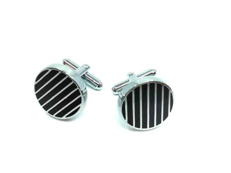 Wyjątkowe spinki do mankietów okragłe czarne paski. Wykonane z materiałów o wysokiej jakości z duża dbałością o szczegóły.
