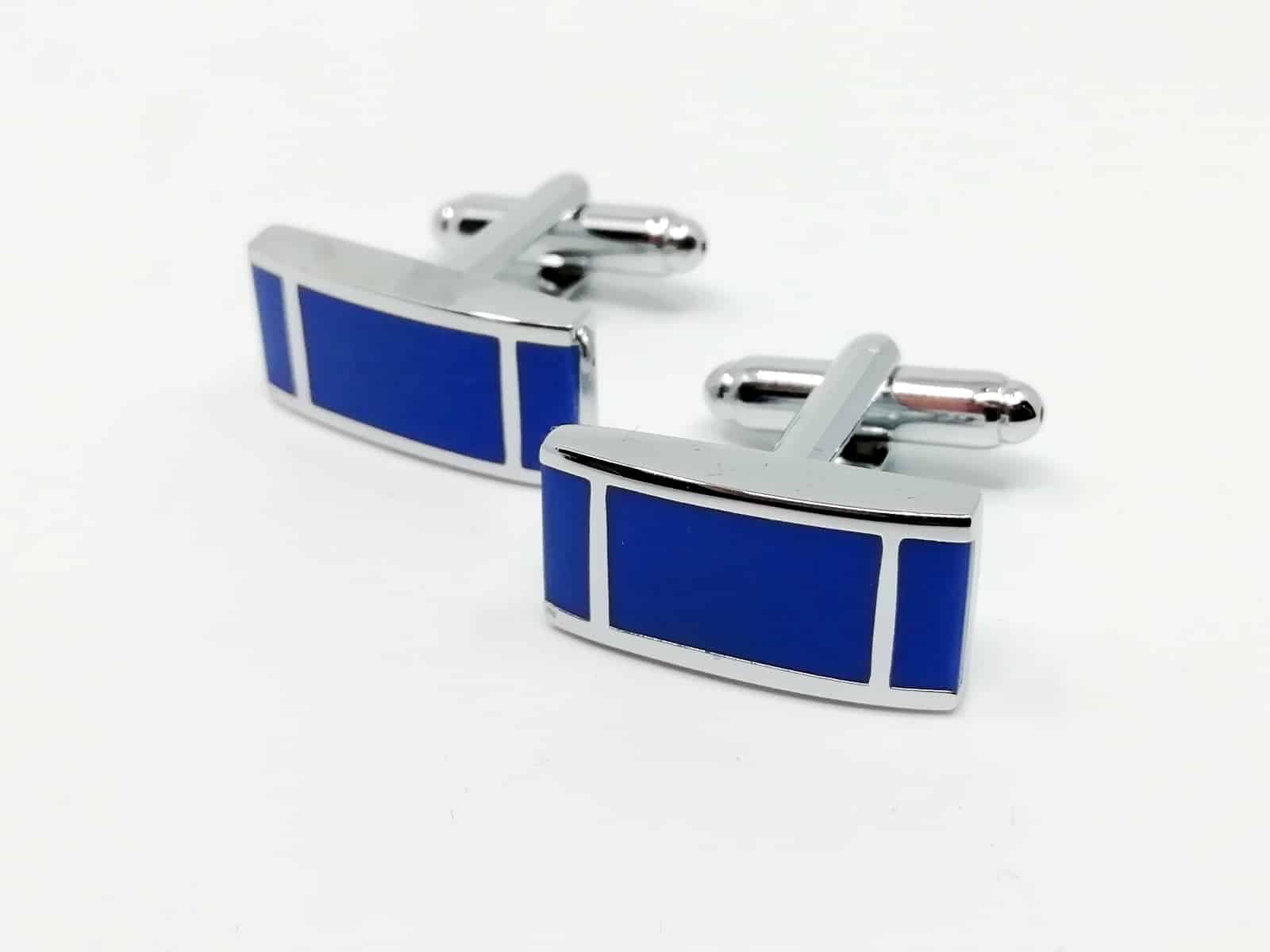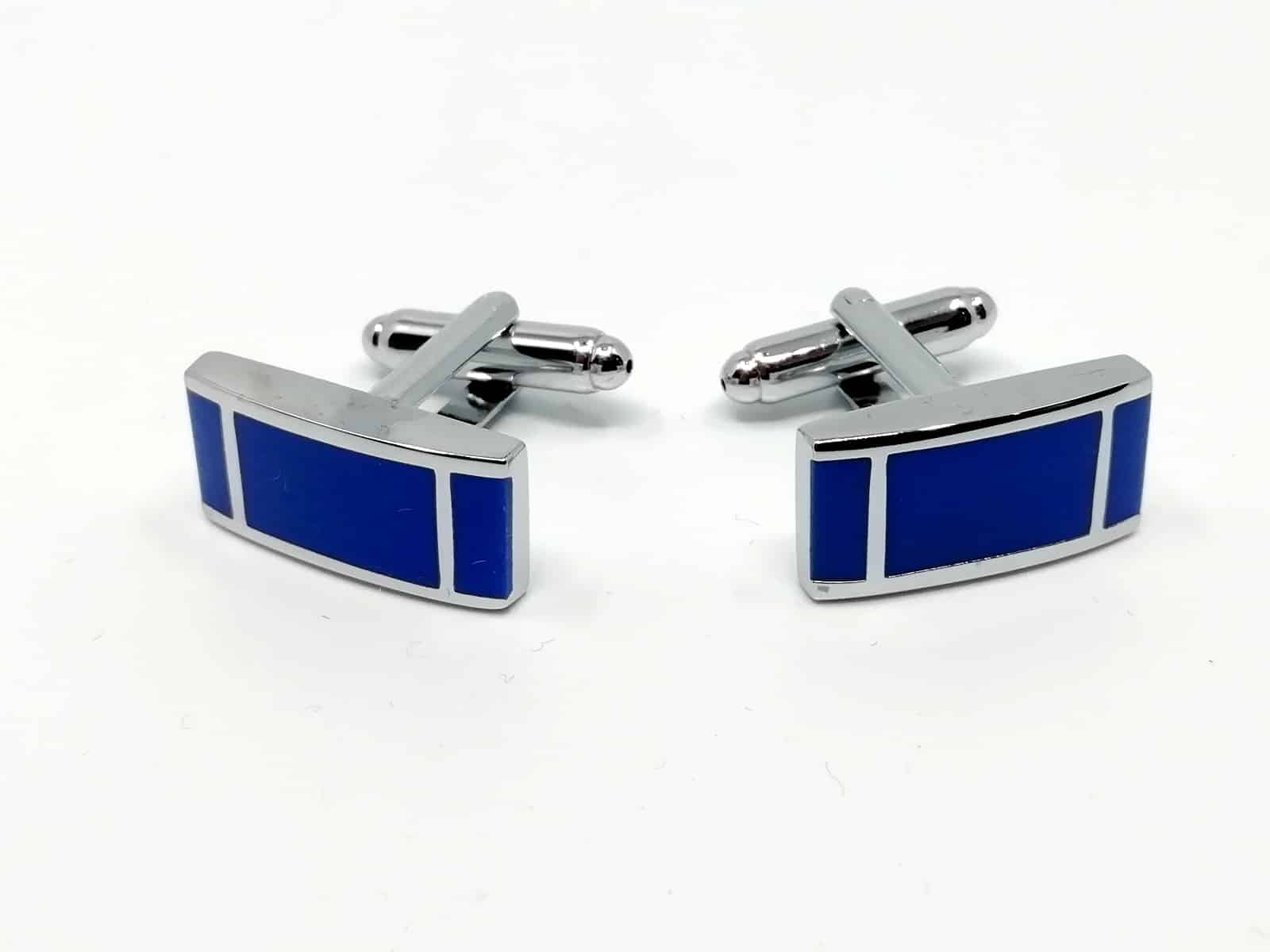 Wyjątkowe spinki do mankietów szafirowe, prostokątne. Wykonane z materiałów o wysokiej jakości z duża dbałością o szczegóły.