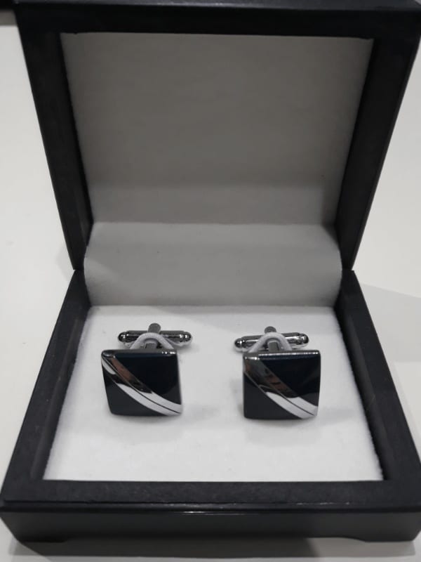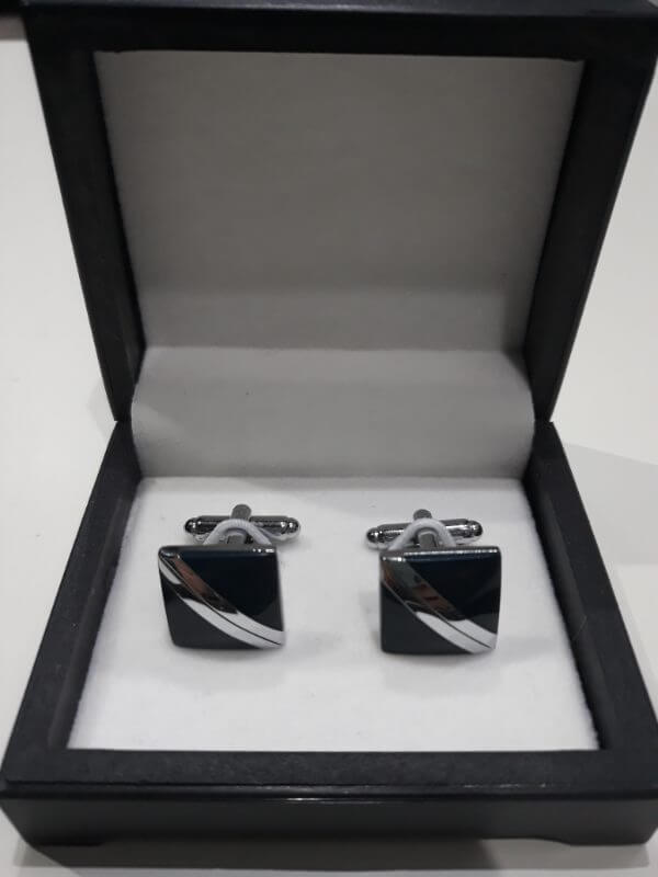 Spinki zapakowane w eleganckie pudełko, dzięki czemu idealnie nadają się na prezent, ślub, rocznice lub inną okazje.