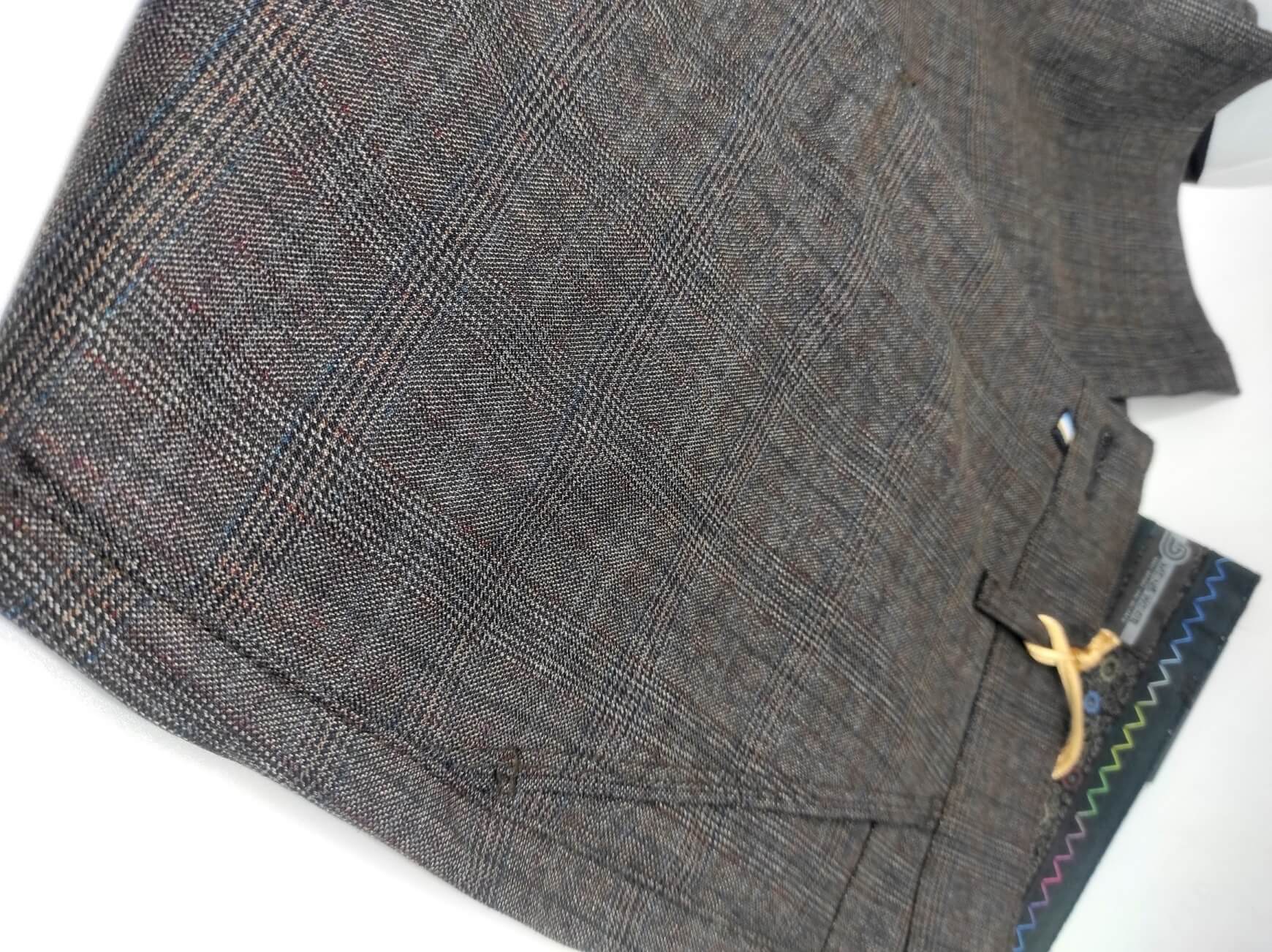 Spodnie Brąz Kratka Bordowo Niebieska.Uszyte w kroju Slim Fit. Spodnie bez wątpienia fantastycznie wyglądają na męskiej sylwetce. Wykonane z wiskozy z domieszką poliestru oraz elastanu, z pewnością zapewniają wysoki komfort noszenia. W zależności od ustawień monitora kolor spodni może nieznacznie odbiegać od koloru rzeczywistego.