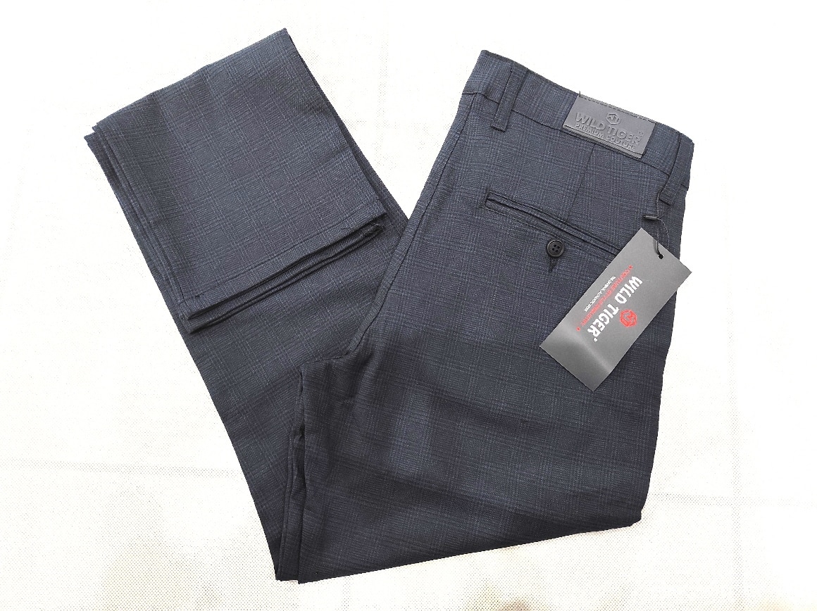 Spodnie męskie Wild Tiger granatowe – delikatna kratka. Spodnie bez wątpienia fantastycznie wyglądają na męskiej sylwetce. Wykonane z poliester’u z domieszką wiskozy, z pewnością zapewniają wysoki komfort noszenia. W zależności od ustawień monitora kolor spodni może nieznacznie odbiegać od koloru rzeczywistego.