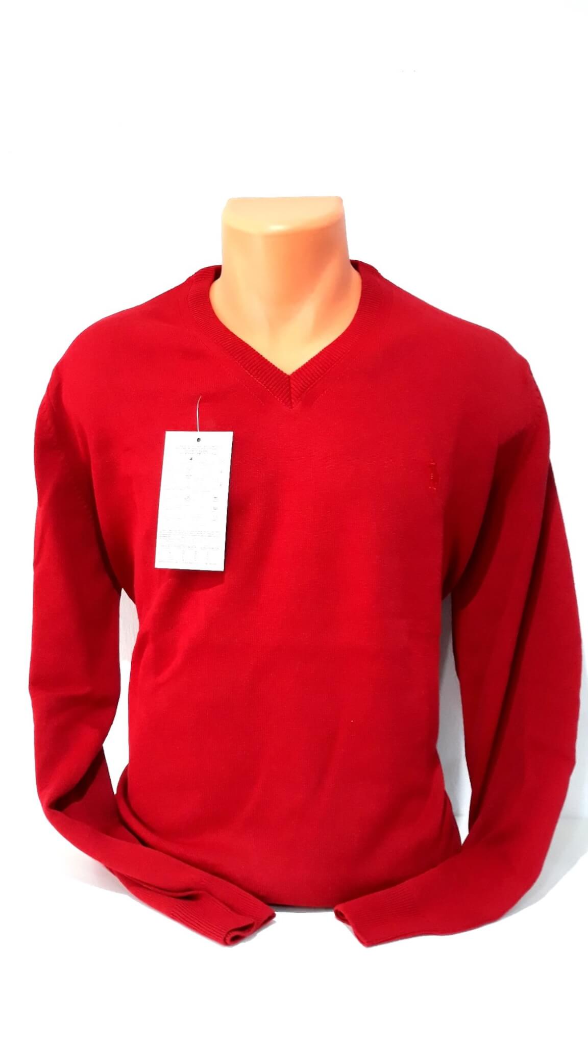 Sweter męski czerwony, z dekoltem w serek. Miękki i przyjemny do ciała materiał, który nie mechaci się i nie rozciąga. Jednokolorowy bez wzorów. Klasyczny oraz bawełniany. Najwyższa jakość wykonania. Bez wątpienia świetnie sprawdza się w chłodne miesiące, przede wszystkim znakomicie się układa. Dodatkowo dopasowuje do każdej sylwetki. Doskonały do większości stylizacji.