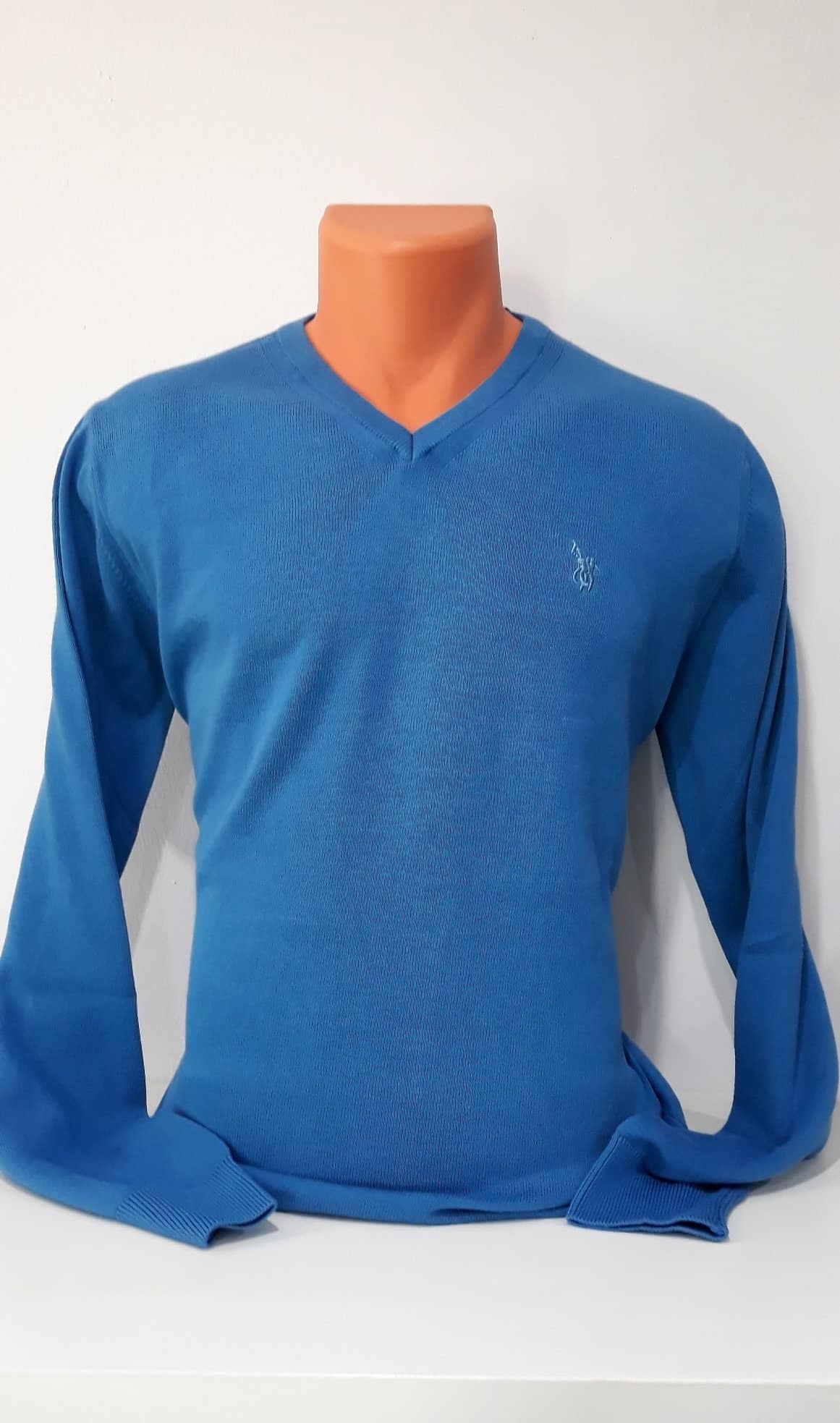 Sweter męski niebieski, z dekoltem w serek. Miękki i przyjemny do ciała materiał, który nie mechaci się i nie rozciąga. Jednokolorowy bez wzorów. Klasyczny oraz wełniany. Najwyższa jakość wykonania. Bez wątpienia świetnie sprawdza się w chłodne miesiące, przede wszystkim znakomicie się układa. Dodatkowo dopasowuje do każdej sylwetki. Doskonały do większości stylizacji.