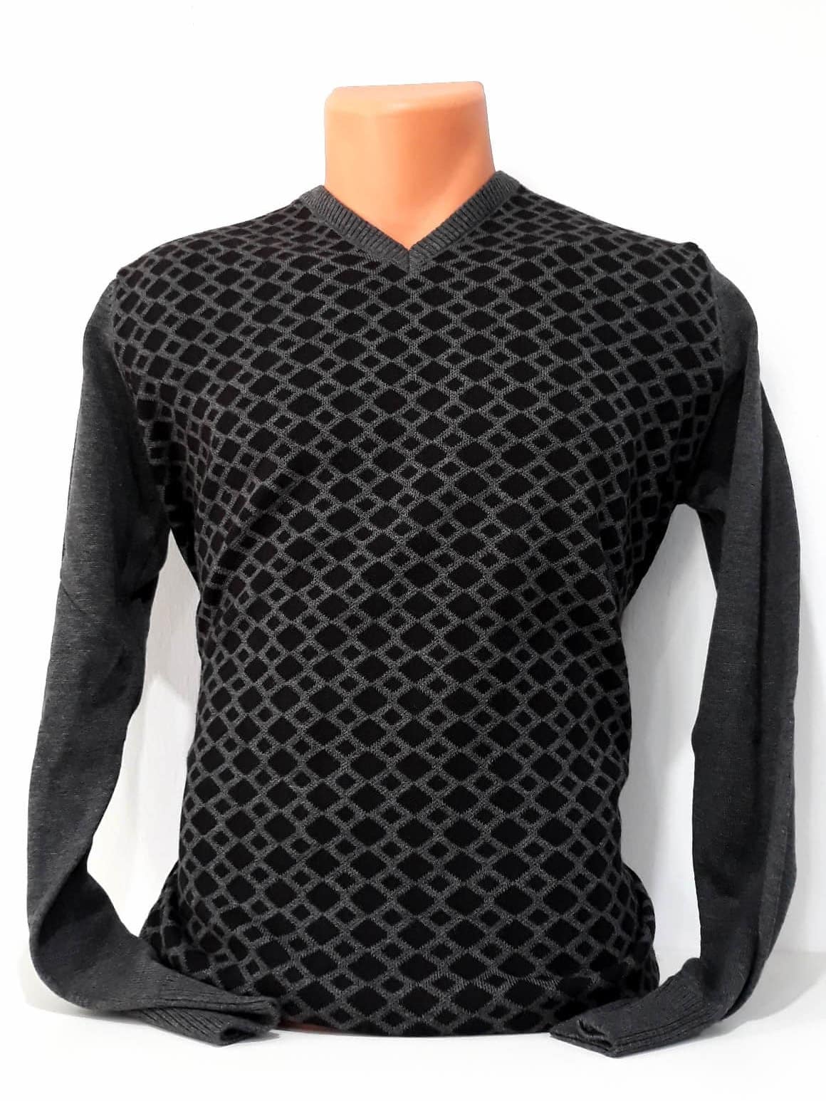 Sweter męski szary w romby, z dekoltem w serek. Miękki i przyjemny do ciała materiał, który nie mechaci się i nie rozciąga. Jednokolorowy bez wzorów. Klasyczny oraz wełniany. Najwyższa jakość wykonania. Bez wątpienia świetnie sprawdza się w chłodne miesiące, przede wszystkim znakomicie się układa. Dodatkowo dopasowuje do każdej sylwetki. Doskonały do większości stylizacji.