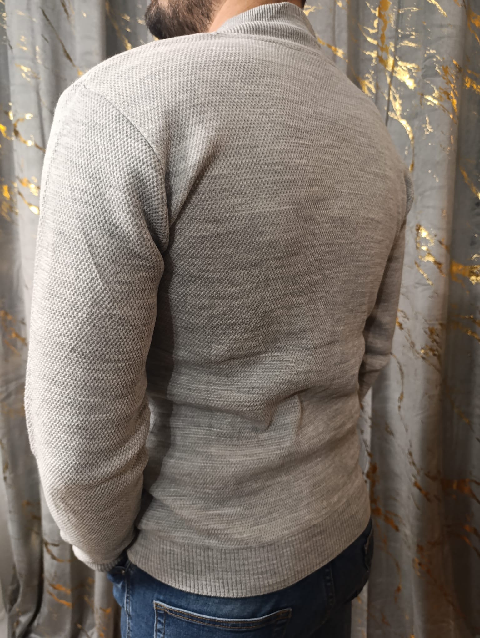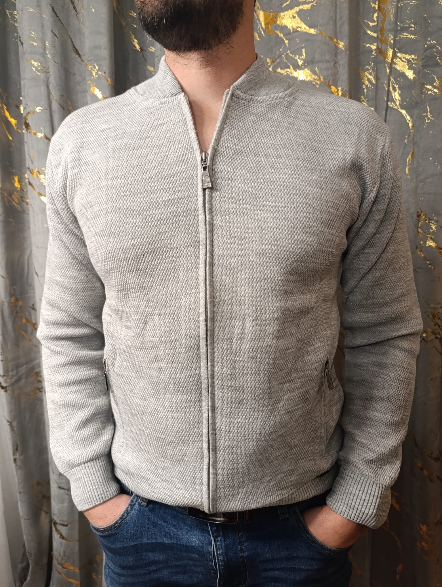Sweter na zamek jasno szary, uszyty w fasonie Slim Fit. Miękki i przyjemny do ciała materiał, który nie mechaci się i nie rozciąga. Klasyczny,wełniany. Najwyższa jakość wykonania. Bez wątpienia świetnie sprawdza się w chłodne miesiące, przede wszystkim znakomicie się układa. Dodatkowo dopasowuje do każdej sylwetki. Doskonały do większości stylizacji. Wykończony sciągaczem na dole oraz przy rękawach.