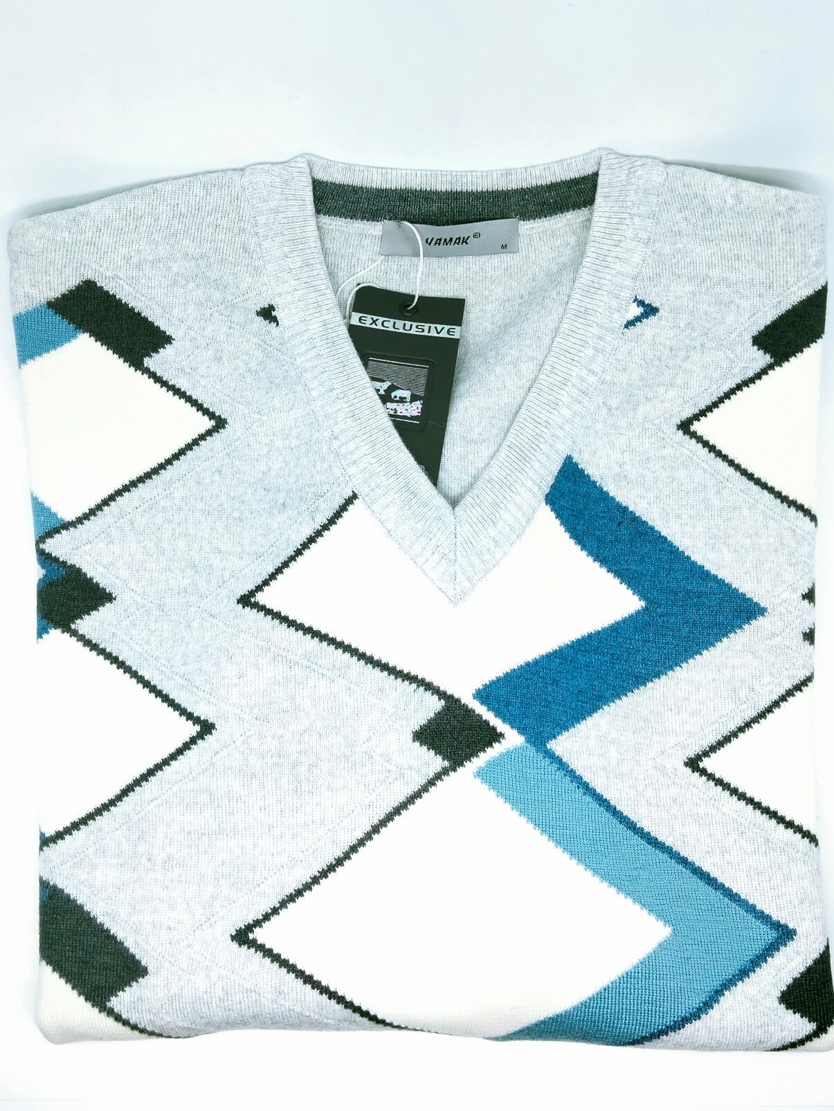 Sweter z dekoltem w Serek Szary Wzorek . Miękki i przyjemny do ciała materiał, który nie mechaci się i nie rozciąga. Klasyczny oraz wełniany.Jednokolorowy z wzorem. Najwyższa jakość wykonania. Bez wątpienia świetnie sprawdza się w chłodne miesiące, przede wszystkim znakomicie się układa. Dodatkowo dopasowuje do każdej sylwetki. Doskonały do większości stylizacji.