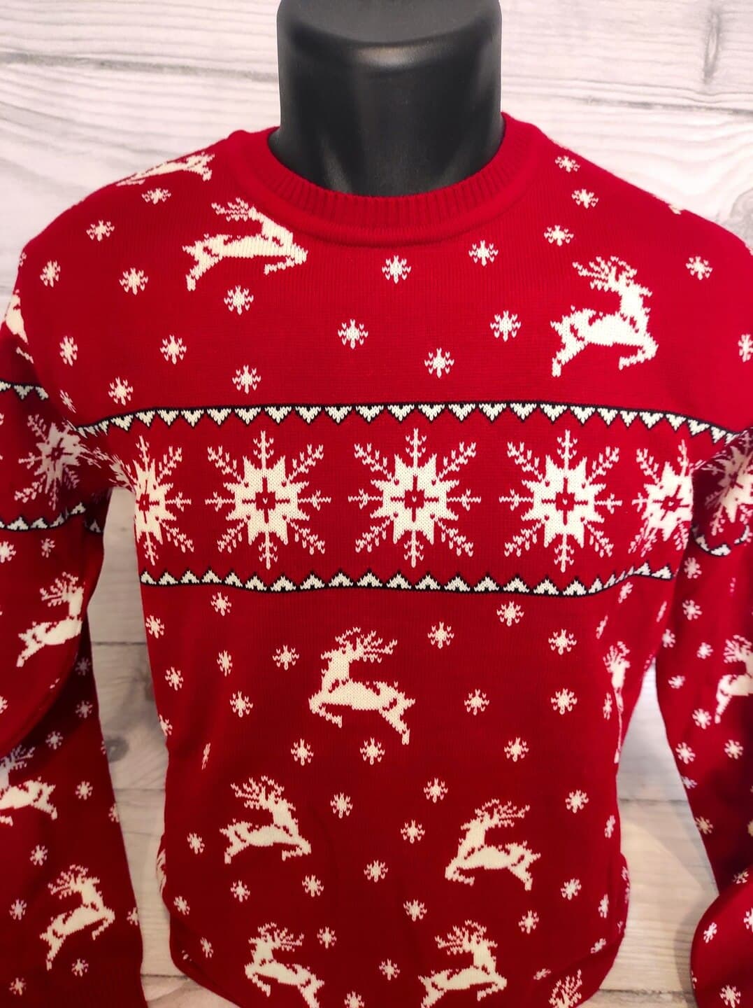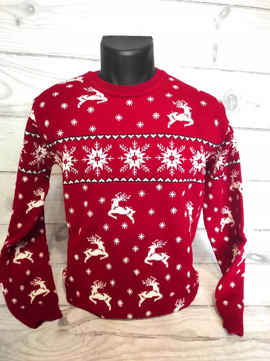 Świąteczny Wełniany Sweter Czerwony z okrągłym dekoltem .