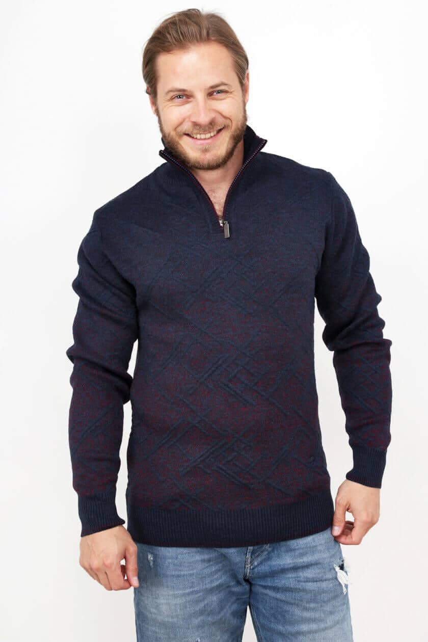 Sweter Męski Wełniany z Kołnierzem Granatowy z Bordową Nicią . Miękki i przyjemny do ciała materiał, który nie mechaci się i nie rozciąga. Klasyczny oraz wełniany. Najwyższa jakość wykonania. Bez wątpienia świetnie sprawdza się w chłodne miesiące, przede wszystkim znakomicie się układa. Dodatkowo dopasowuje do każdej sylwetki. Doskonały do większości stylizacji.