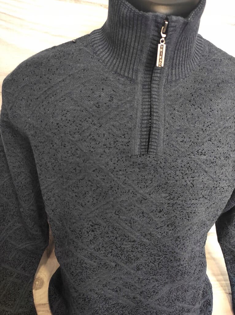 Posiada wysoki kołnierz zapinany na zamek,a możliwość jego rozpięcia nie pozwoli się przegrzać.Dół swetra oraz rękawy zakończone są ściągaczami.