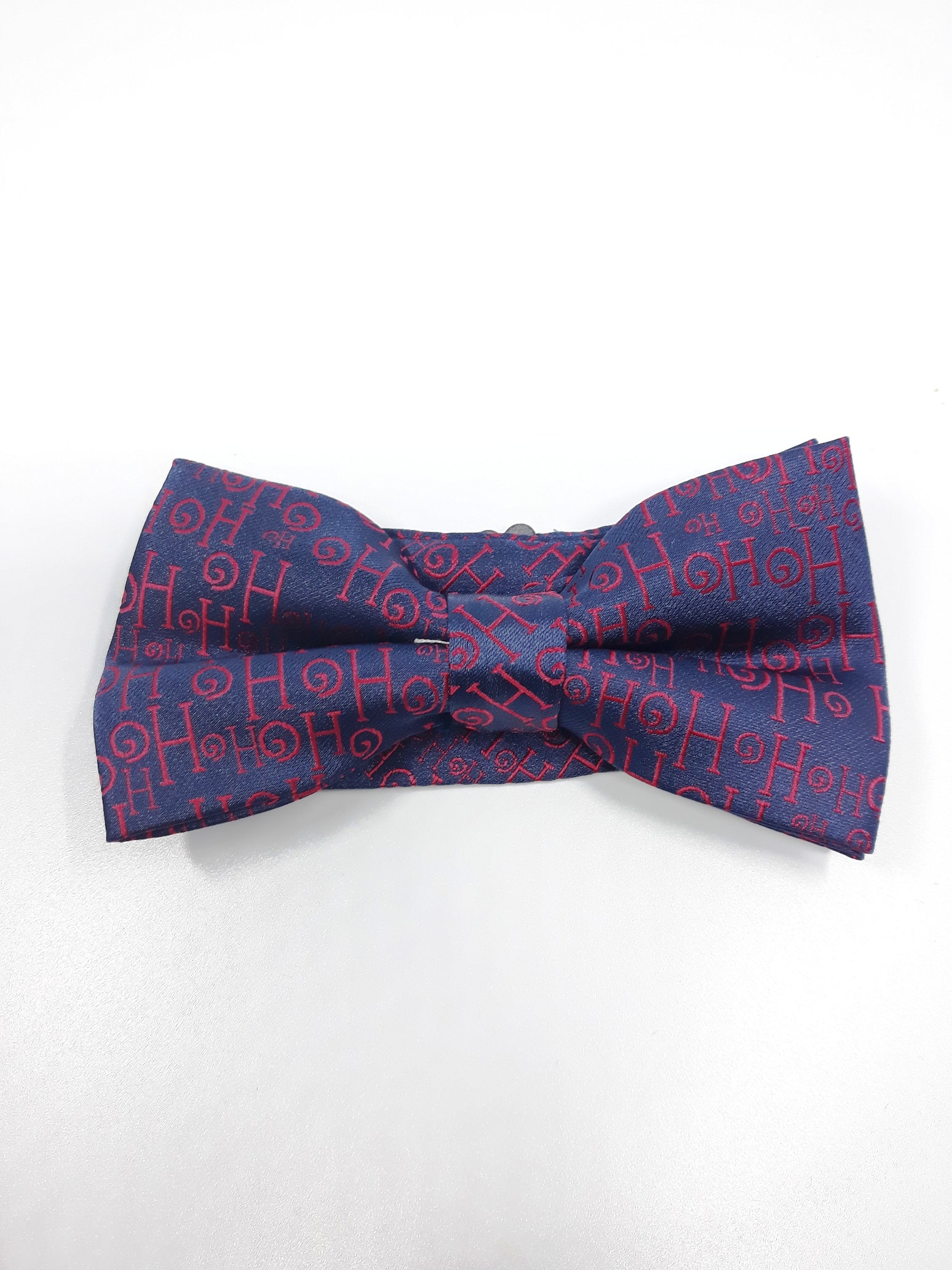 Unikatowa mucha męska świąteczna w kolorze granatowym z napisem ho ho.