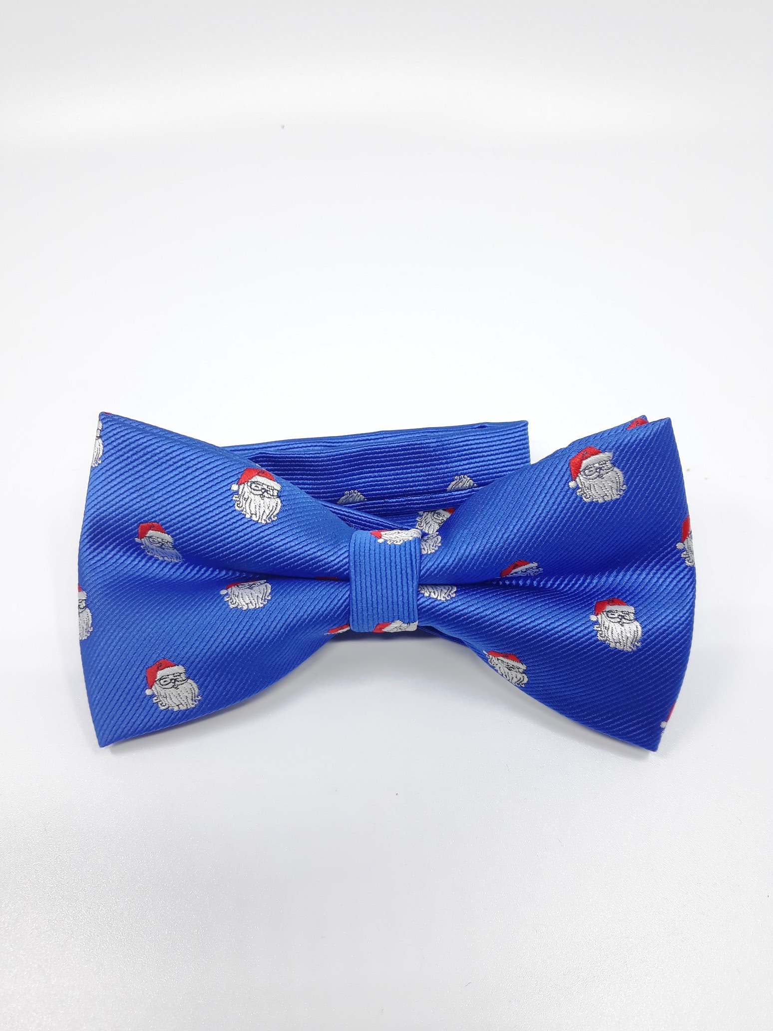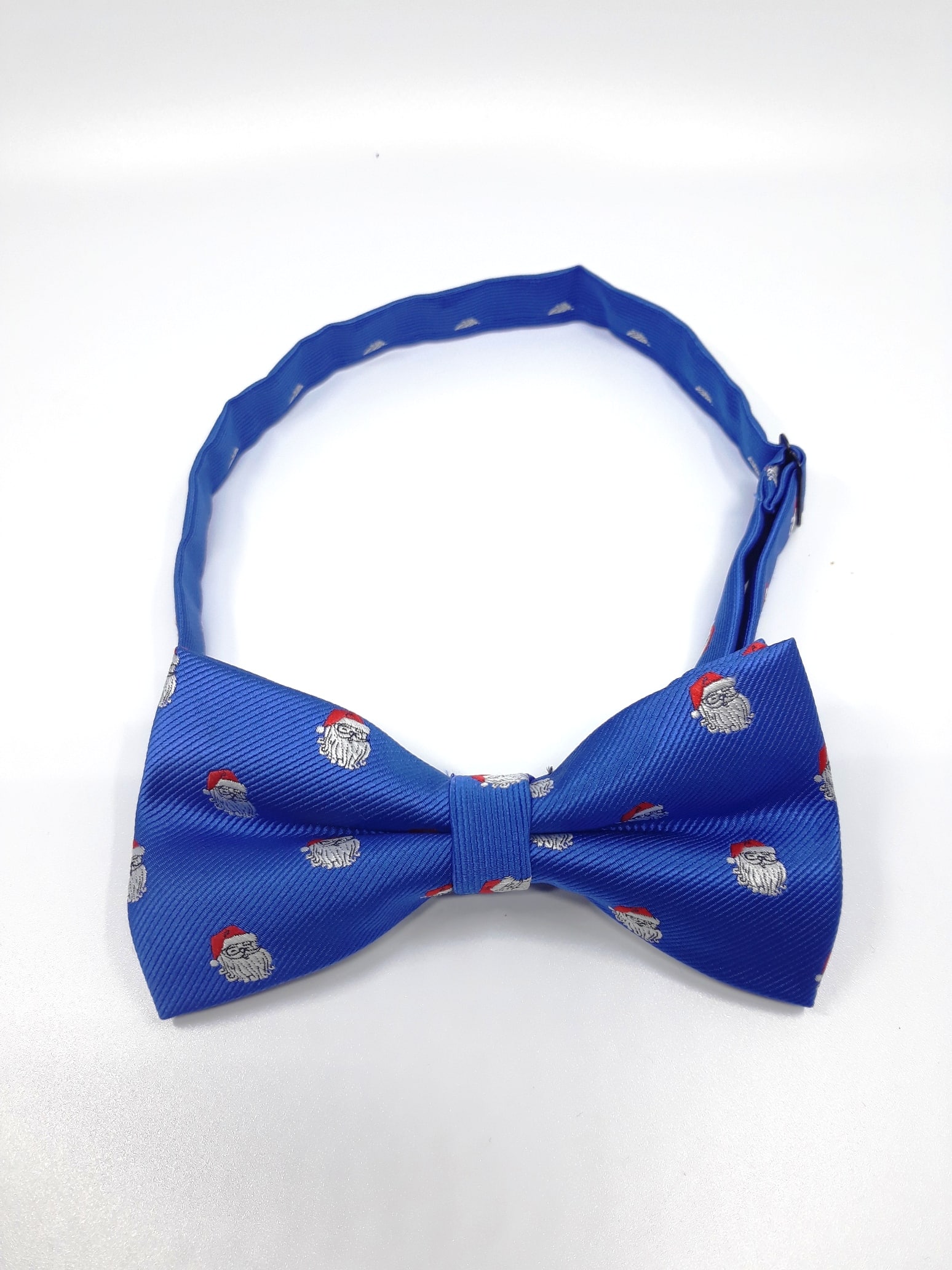 Unikatowa mucha męska świąteczna w kolorze chabrowym z dodatkiem Mikołaja.