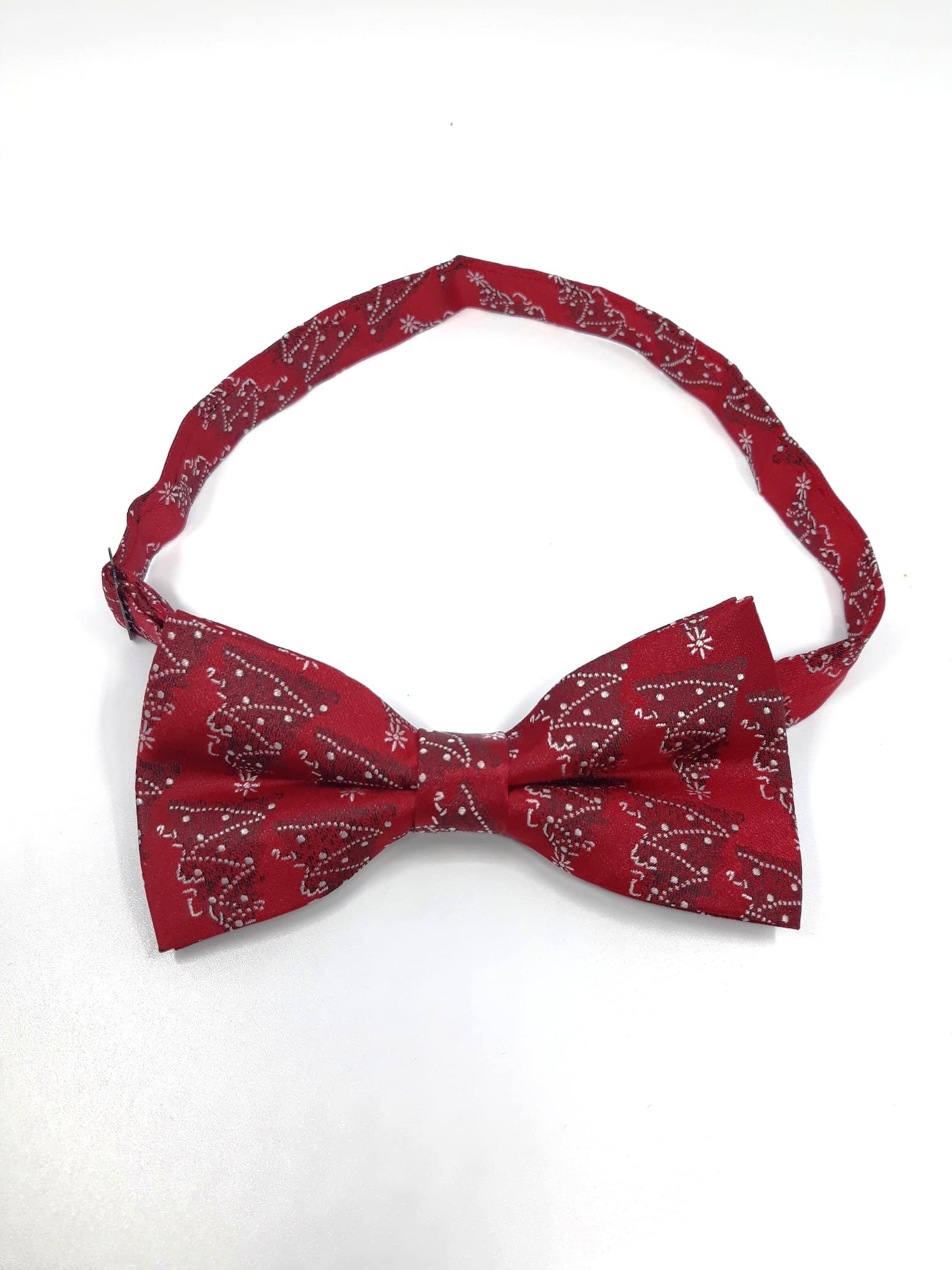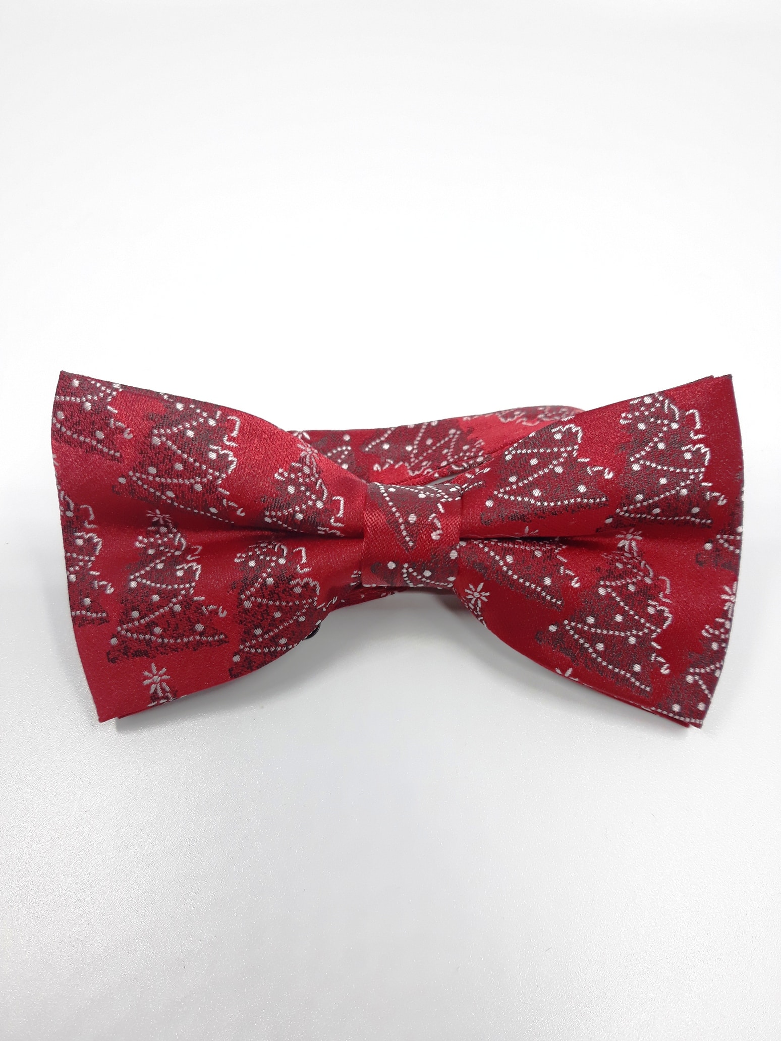 Unikatowa mucha męska świąteczna w kolorze bordowym w choinki.