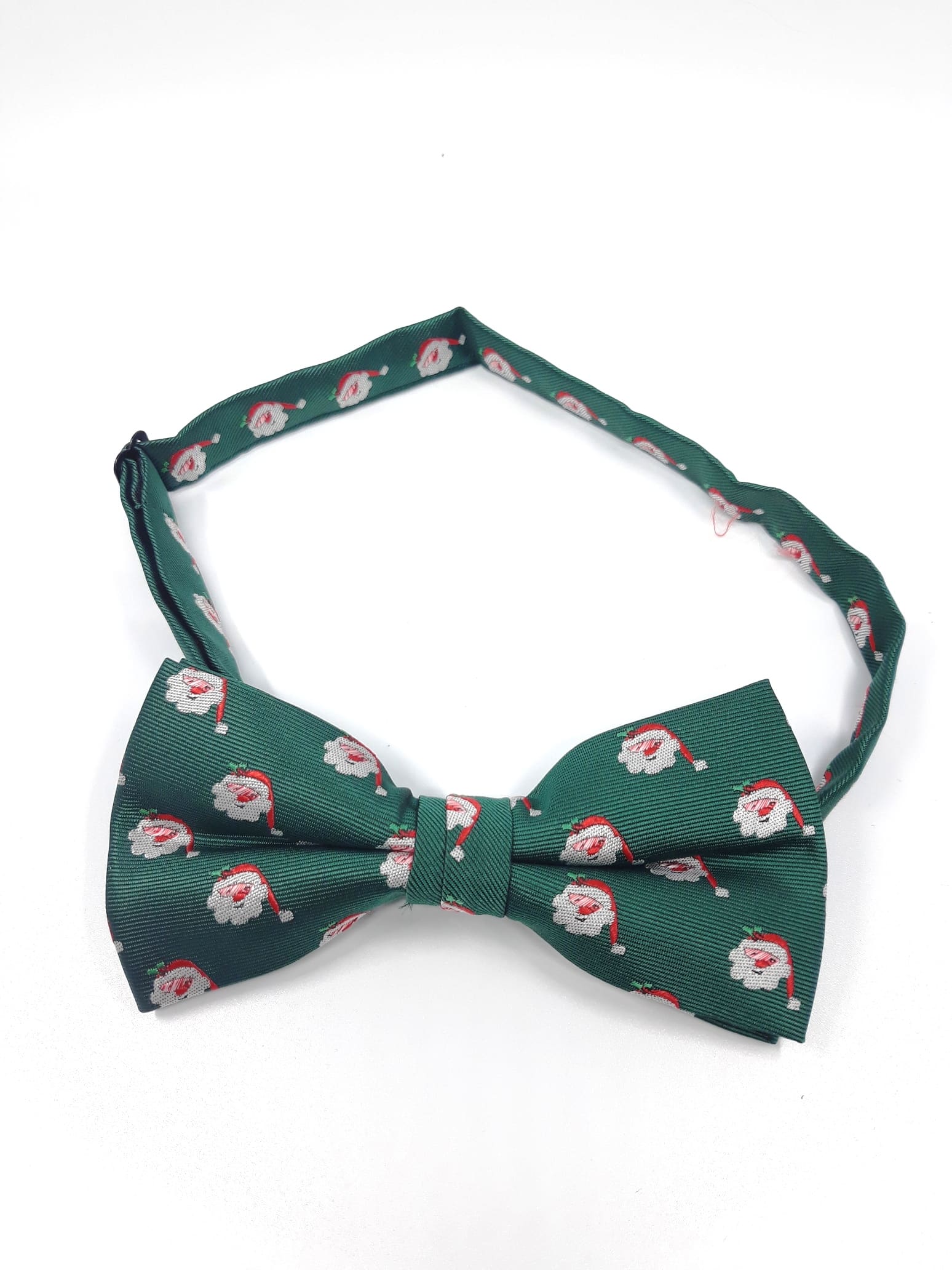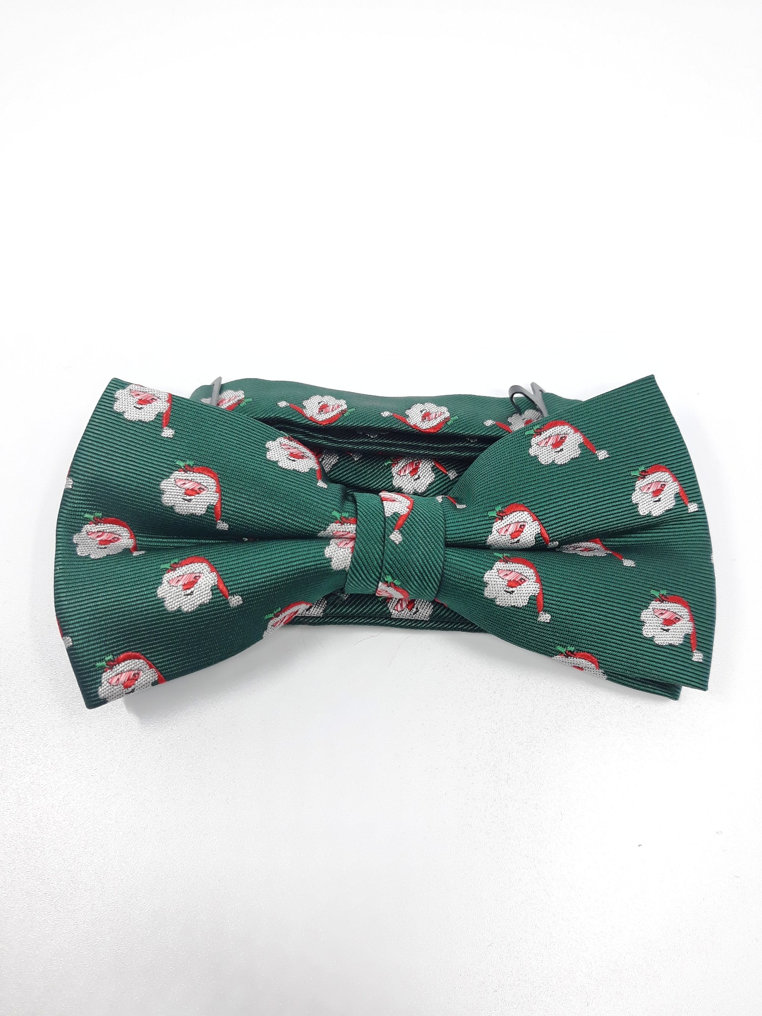 Unikatowa mucha męska świąteczna w kolorze ciemnej zieleni z akcentem Mikołajów .