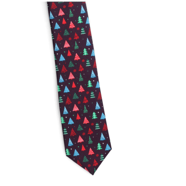 Świąteczny elegancki krawat męski w ciekawy wzór choinek.