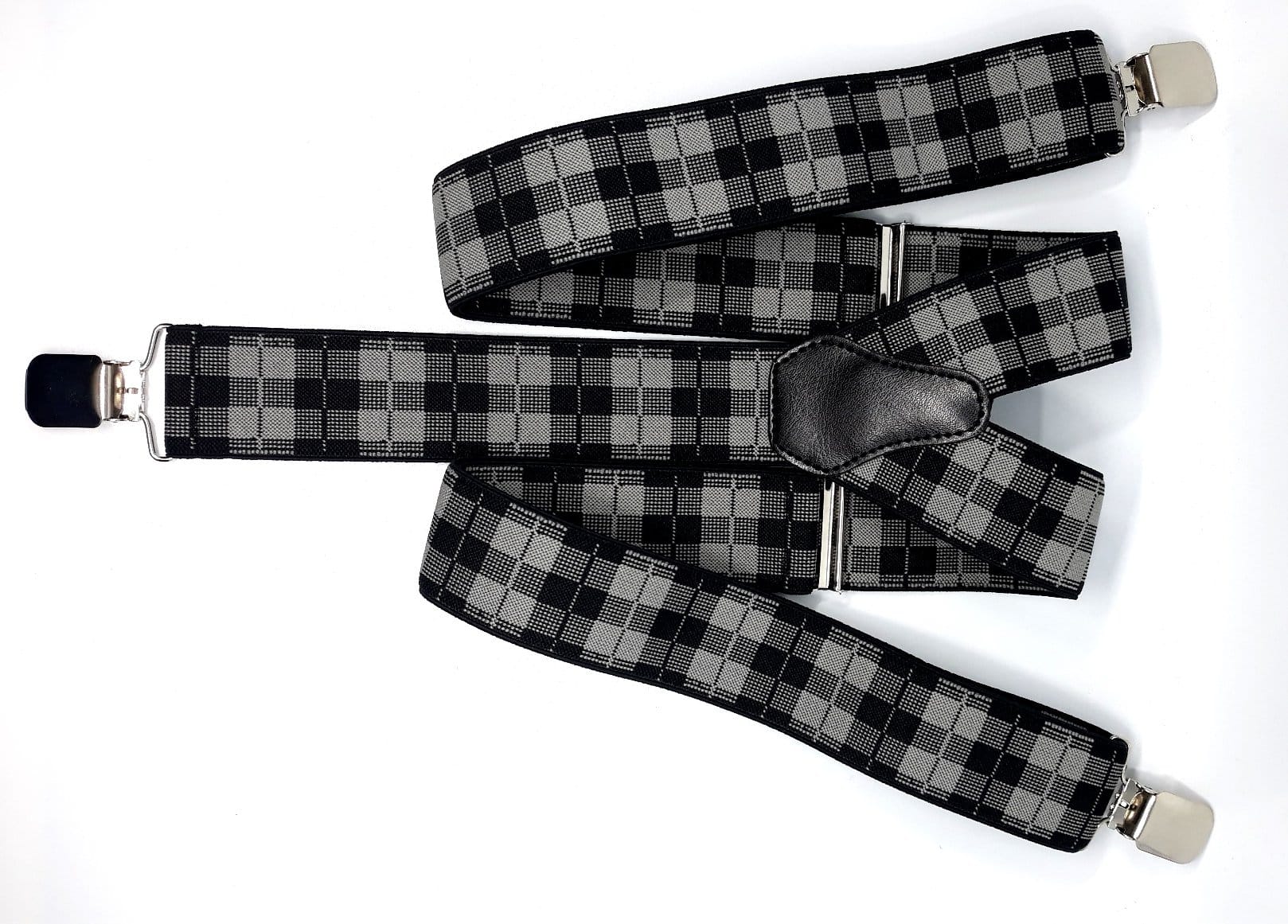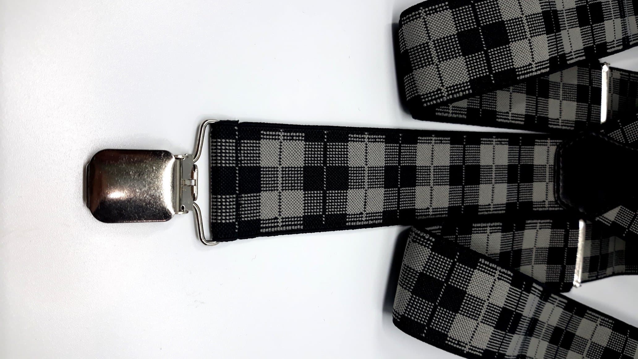 Szelki męskie to produkt trwały,starannie wykonany.Dostępny w kolorze czarno jasnym tworzące kratę. Są płynnie regulowane bardzo mocnymi klamrami.Trzy paski połączone są kolorystycznie dobraną łatką skórzaną. Idealne dla mężczyzny każdego wzrostu. Wykonane z miękkiej gumy która super się naciąga.